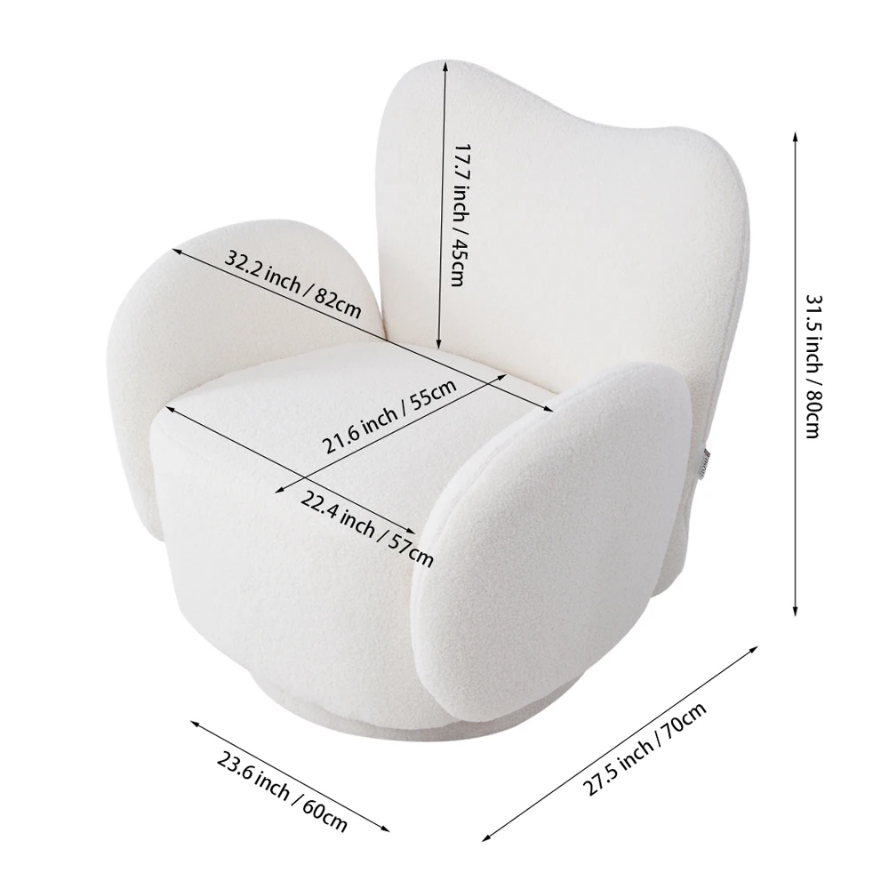This stylish swivel chair is the perfect blend of comfort and modern design, complementing a variety of decor. Its plush teddy fleece/ chenille is soft to the touch, while high-density sponge filling provides enjoyable sitting experience. The armrests and wide backrest provide an ultimate relief for your arms and back, making this chair ideal for relaxing in any room. Plus, it is incredibly easy to assemble, making it a breeze to set up in your home. Whether you use it as a living room chair, bedroom chair, office room chair, it is a fantastic addition.