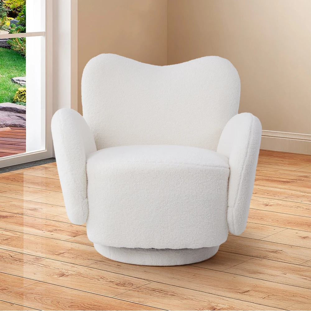 360° Upholstered Teddy Fleece Swivel Chair for Bedroom Living Room
