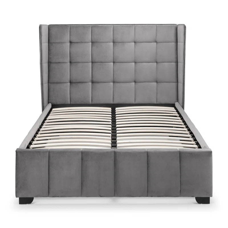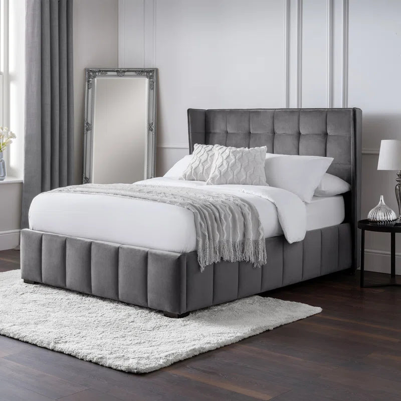 The Mareike Upholstered Panel Bed with Mattress combines timeless elegance with practical functionality. Its striking winged headboard, wrapped in sumptuous grey velvet, adds a touch of sophistication to any bedroom. Beyond its stylish appearance, the bed offers generous storage options, keeping your space organized and clutter-free. Whether you choose the standard design or the ottoman version, Mareike delivers comfort and convenience without compromising on style. Elevate your sleeping experience with a bed that brings both beauty and smart storage to your home.