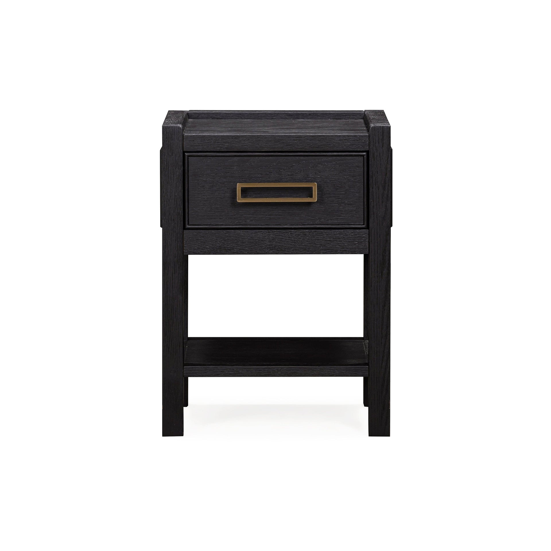Finished in a fresh black oak veneer, it features one handy drawer and a lower shelf—perfect for storing night-time essentials.