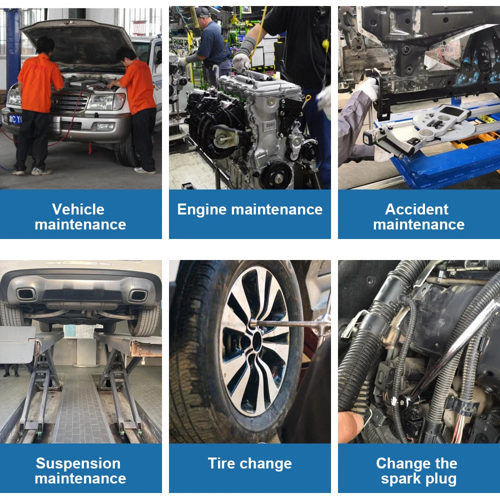 This comprehensive 108-piece socket wrench set is your ultimate solution for professional car repairs and DIY maintenance. Featuring a complete combination of ratchet spanners, screwdriver bits, and precision tools, it delivers everything you need for tackling automotive projects with confidence. The robust construction ensures durability through countless repairs, while the organized box packaging keeps your tools accessible and protected. Whether you're a seasoned mechanic or a dedicated DIY enthusiast, this versatile toolkit transforms complex repairs into manageable tasks. Invest in quality craftsmanship and reliability that won't let you down when you need it most.