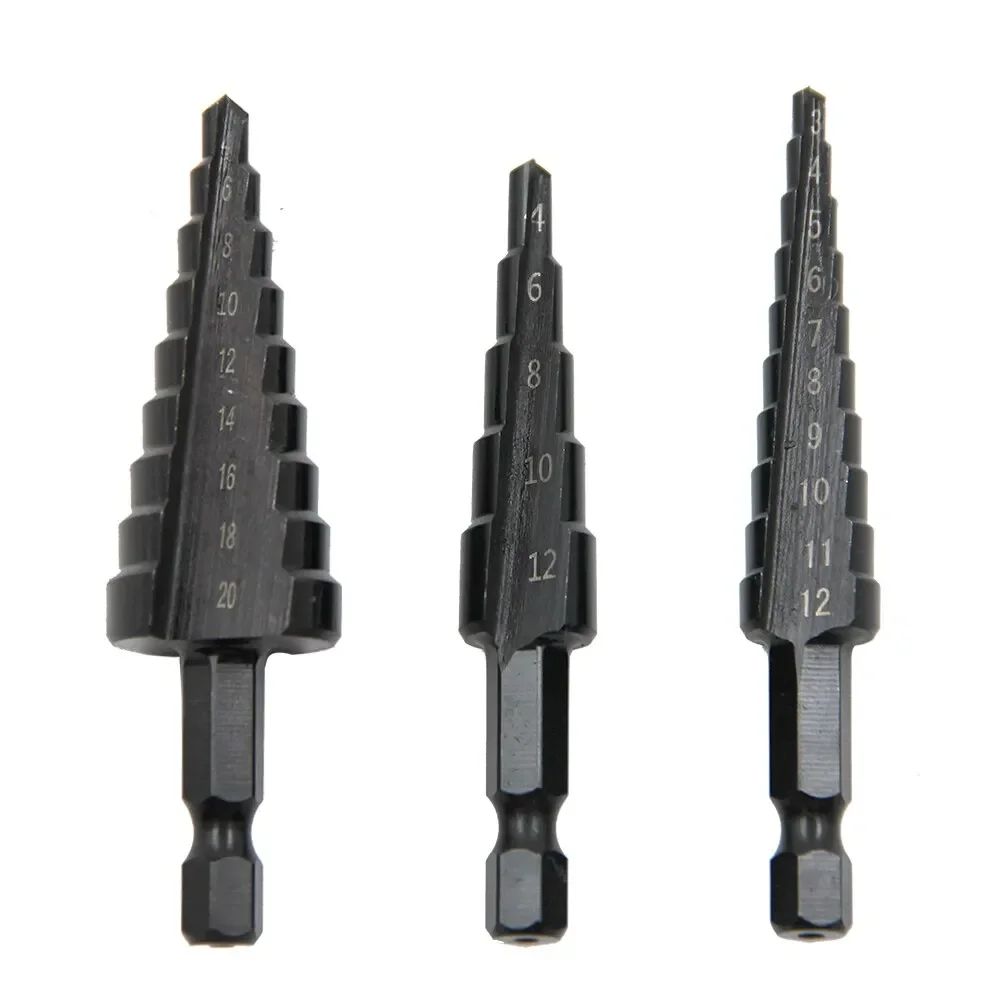 3pc Black Hexagonal Shank Straight Slot Ladder Drill Bit Reaming and Hole Opening Drill Tool Set