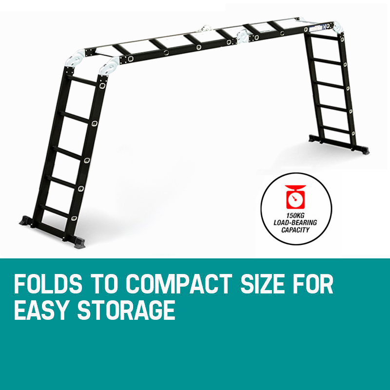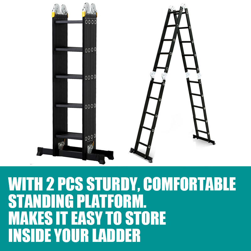 This multi-purpose ladder can be used as a stepladder (single or double), a straight ladder reaching up to 5.7m . As a portable scaffolding this multipurpose ladder is very useful for painting ceilings, working on walls, etc. while as a versatile ladder it can help you to access lofts, clean windows, interior and exterior painting and decorating and any work in the garden. This tool is suitable for commercial and domestic use and has been manufactured to the highest standard, conforming to GPSG & EN131 standards and CE regulations..