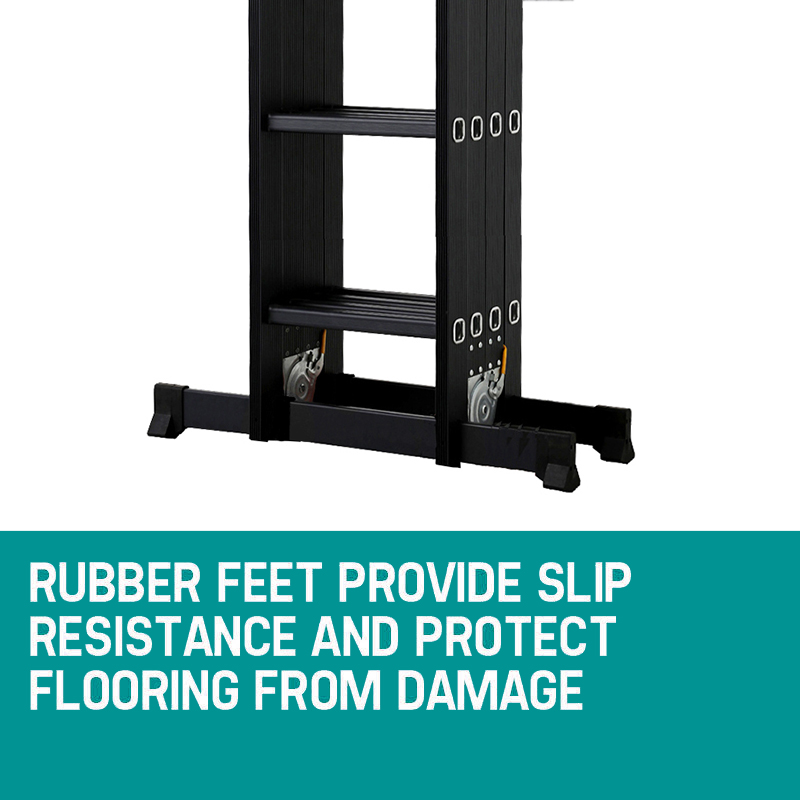 5.7M Multi-Use Aluminium Folding Extendable Ladder With 2 Platform 14 In 1 Combination Ladder Anti-Slip Rubber Sleeve