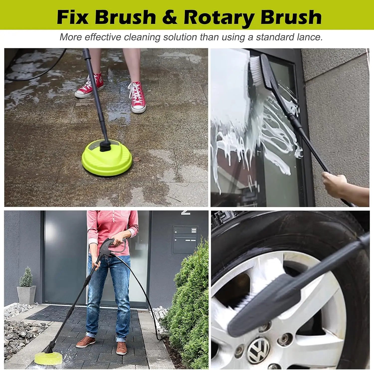 [Turbo Nozzle & All in 1 Adjustable Nozzle]---the turbo nozzle helps in reducing cleaning time by utilizing the rotary action of wide angle spray pattern, . It delivers faster & deeper cleaning action. with all in 1 adjustable nozzle, Adjust the pressure with jet and spray model by rotating or push the nozzle.