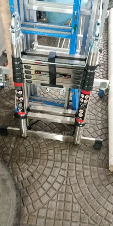 Heavy Duty Steel Telescopic Ladder 3.8m/5m A-Frame, 150kg Load Anti-Slip Stable w Stabilisers Transform your access challenges with this professional-grade telescopic ladder, engineered for demanding tasks. Built from premium stainless steel and CE certified for safety, this robust A-frame design delivers exceptional stability with integrated stabilisers that keep you secure on any surface. The telescopic mechanism extends from 3.8m to 5m, adapting to your specific height requirements without compromising durability. With an impressive 150kg load capacity, it handles both your weight and tools with confidence. Anti-slip steps ensure reliable footing even in challenging conditions, while the industrial-strength construction resists corrosion and wear. Whether you're tackling maintenance work, construction projects, or high-reach cleaning, this versatile ladder combines safety, stability, and performance. The compact telescopic design makes storage and transport effortless, yet deploys instantly when needed. Invest in a ladder that prioritises your safety and longevity—the smart choice for professionals and serious DIY enthusiasts alike.