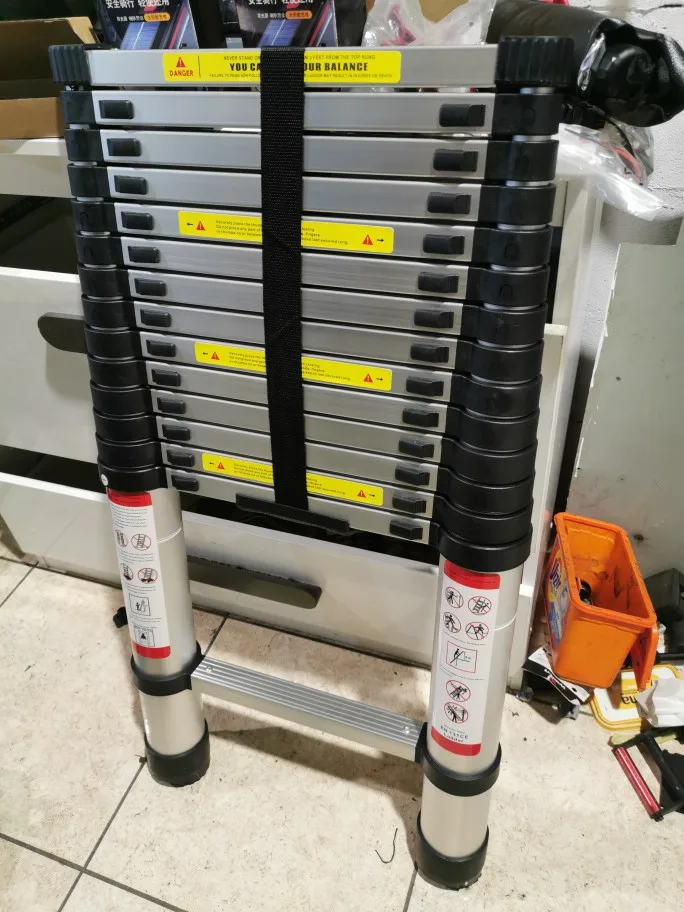 Introducing the versatile 2.6M-5M Telescopic Ladder, expertly crafted from high-quality aluminum alloy, designed for both household and outdoor tasks. This ladder is an essential tool for homeowners, DIY enthusiasts, and professionals alike, offering the flexibility to extend to various heights up to 5 meters (16.4 feet). Its compact design allows for easy storage, making it a perfect solution for those with limited space. Whether you're painting, cleaning gutters, or reaching high shelves, this ladder provides the stability and support you need for any project.