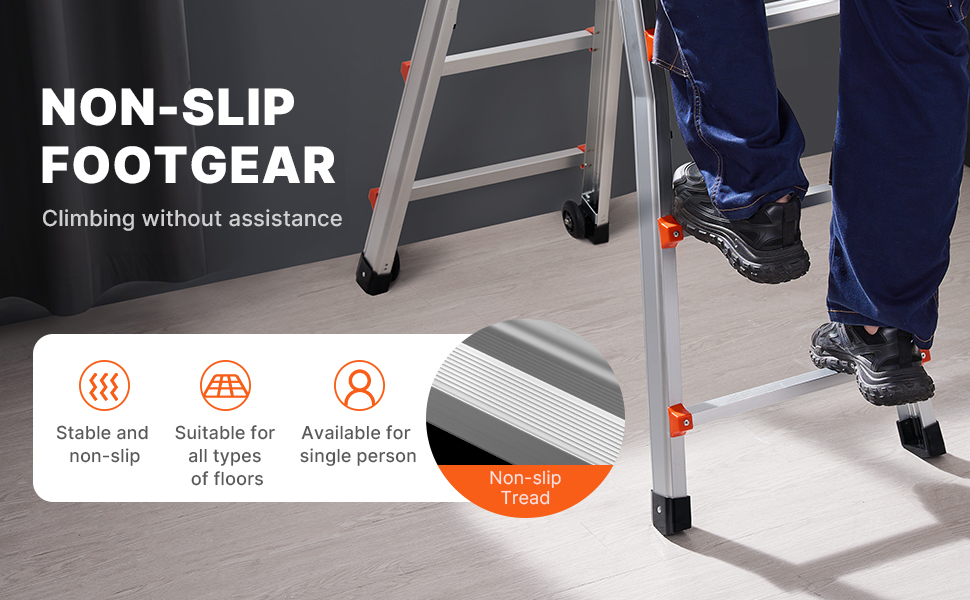 Sturdy and Durable: Made from high-strength aluminum alloy, this a frame ladder is built to last without bending or breaking, even when used at height. The bottom is equipped with anti-slip pads for added safety.