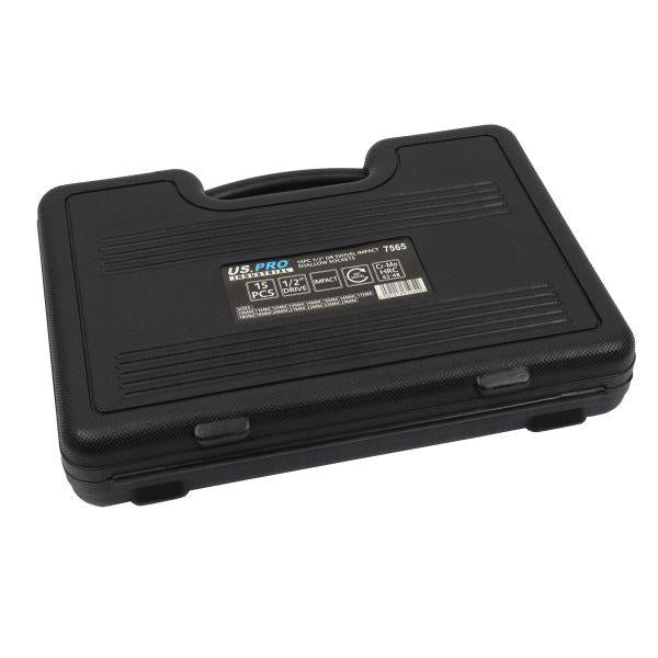 US PRO INDUSTRIAL 15pc 1/2" Dr Swivel Impact Shallow Sockets 10 - 24mm 7565