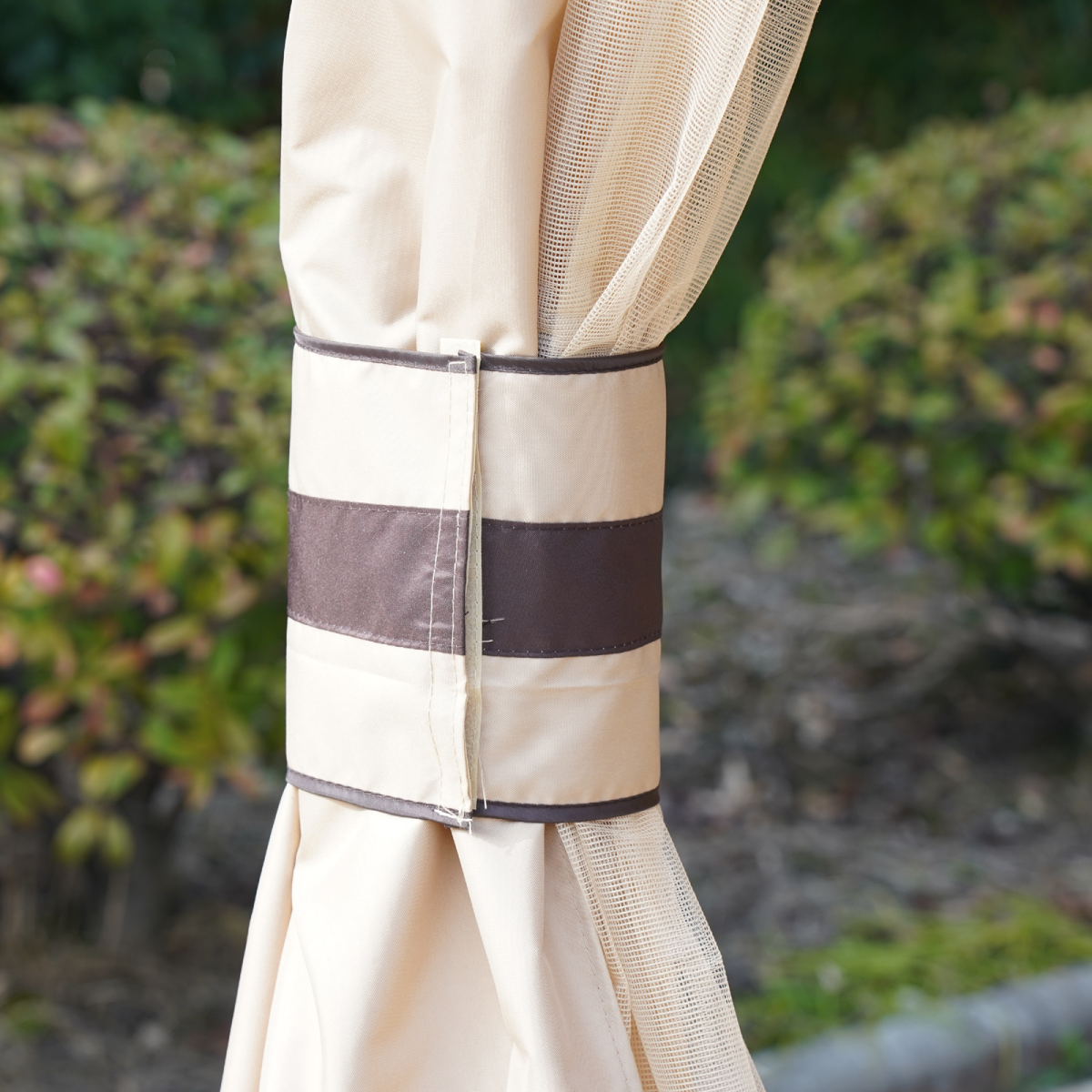 Fully Enclosed Screen: Enjoy privacy and protection from the outside world with our fully enclosed mesh screen. Featuring four zipper-closed doors, this gazebo offers both convenience and comfort while you relax in your outdoor sanctuary. The mesh netting is strategically placed between the two-tier roofs, enhancing airflow while keeping bugs at bay.
