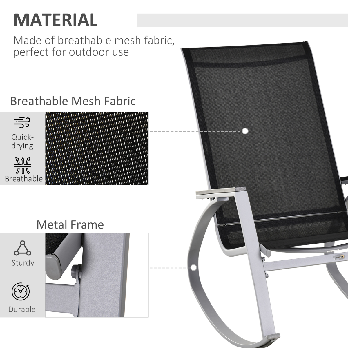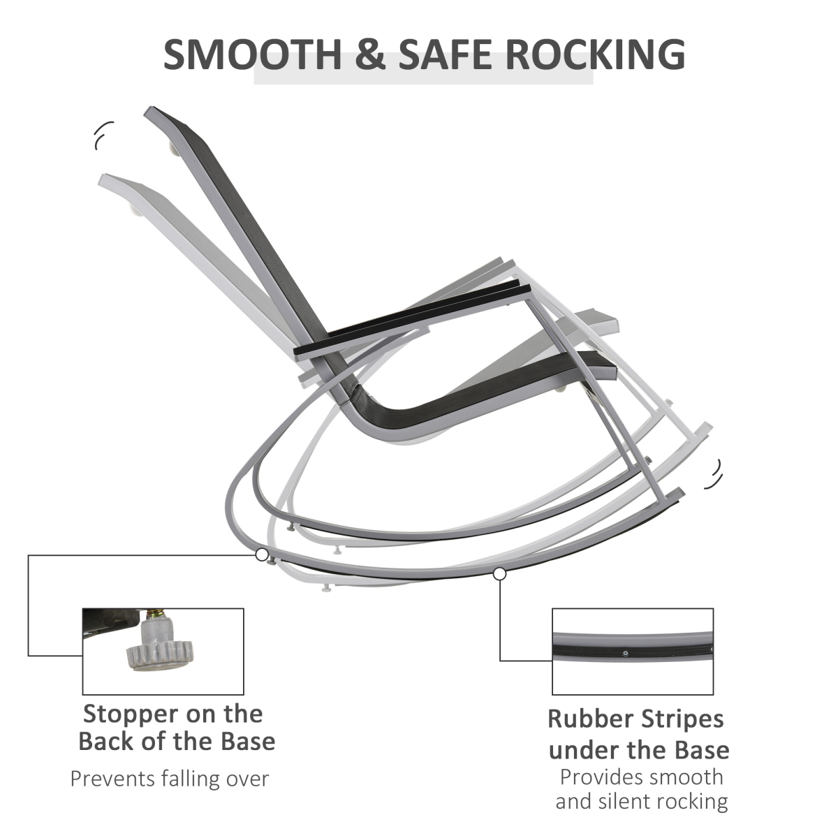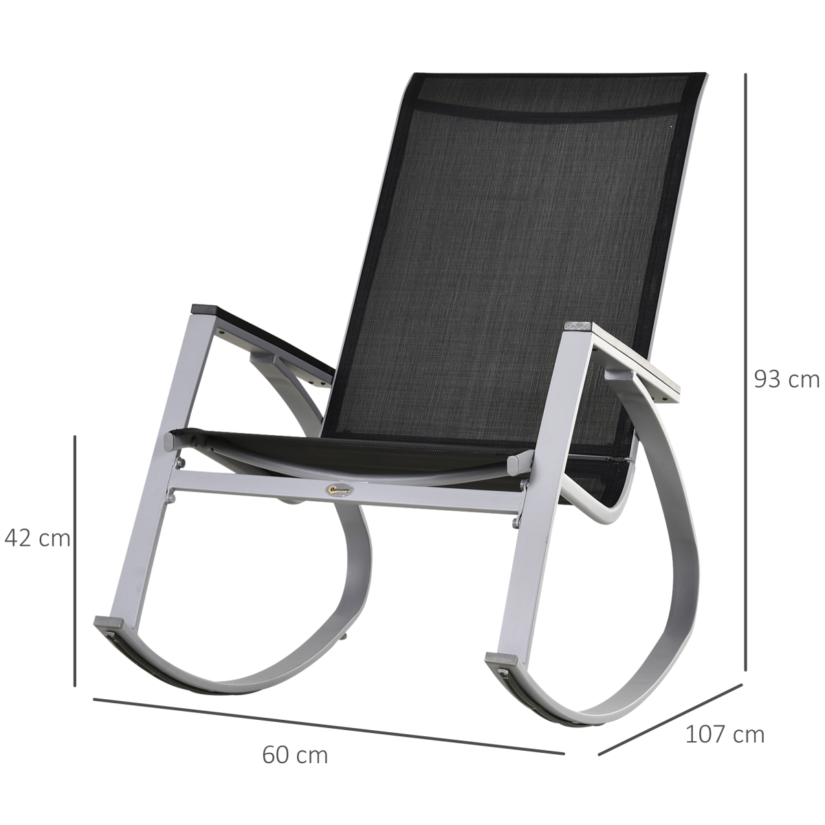 Experience ultimate relaxation with the Outsunny Texteline Rocking Chair, designed to elevate your outdoor and indoor lounging experience. Crafted with a robust metal frame and featuring a breathable texteline seat and backrest, this rocking chair combines modern aesthetics with comfort, making it the perfect addition to your garden or patio.