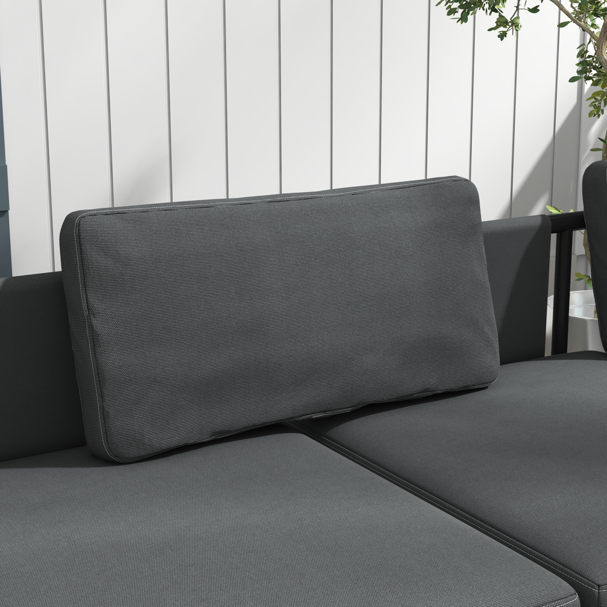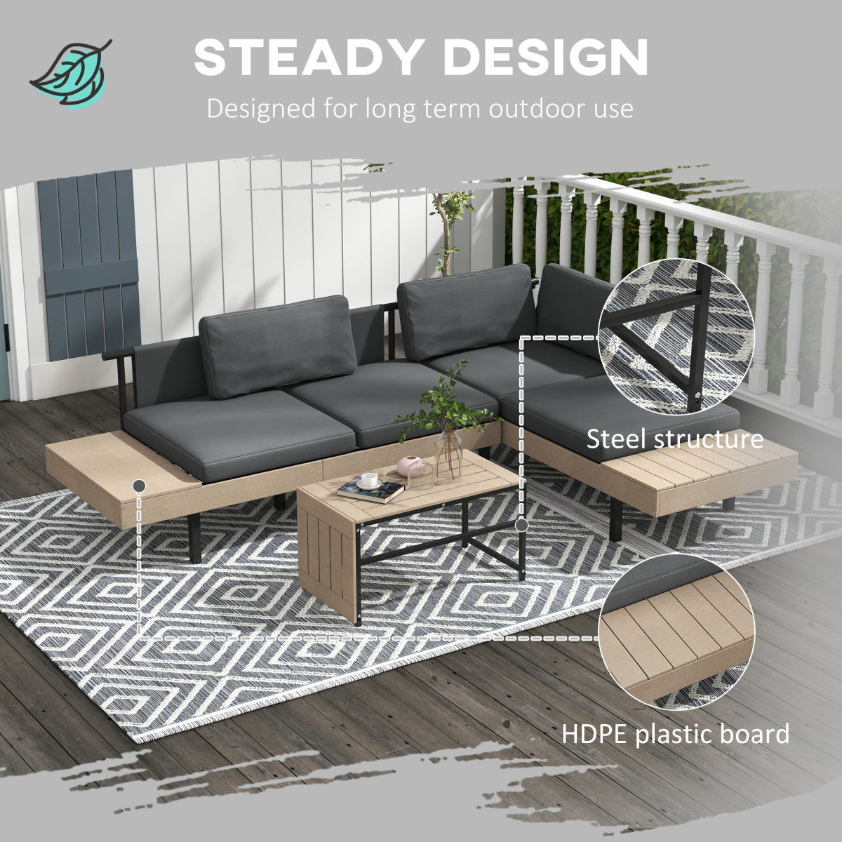 Transform your outdoor space into a cozy retreat with the HDPE Garden Furniture Set. This stylish and functional set features two spacious loveseat sofas elegantly arranged in an 'L' shape, complemented by a chic coffee table. Crafted with a robust powder-coated steel frame, this furniture set promises durability and stability for long-lasting enjoyment. The plush, padded cushions offer exceptional comfort, allowing you to relax and unwind in your garden, patio, or balcony. Perfectly designed for corners, this set maximizes your space while adding a touch of modern elegance.