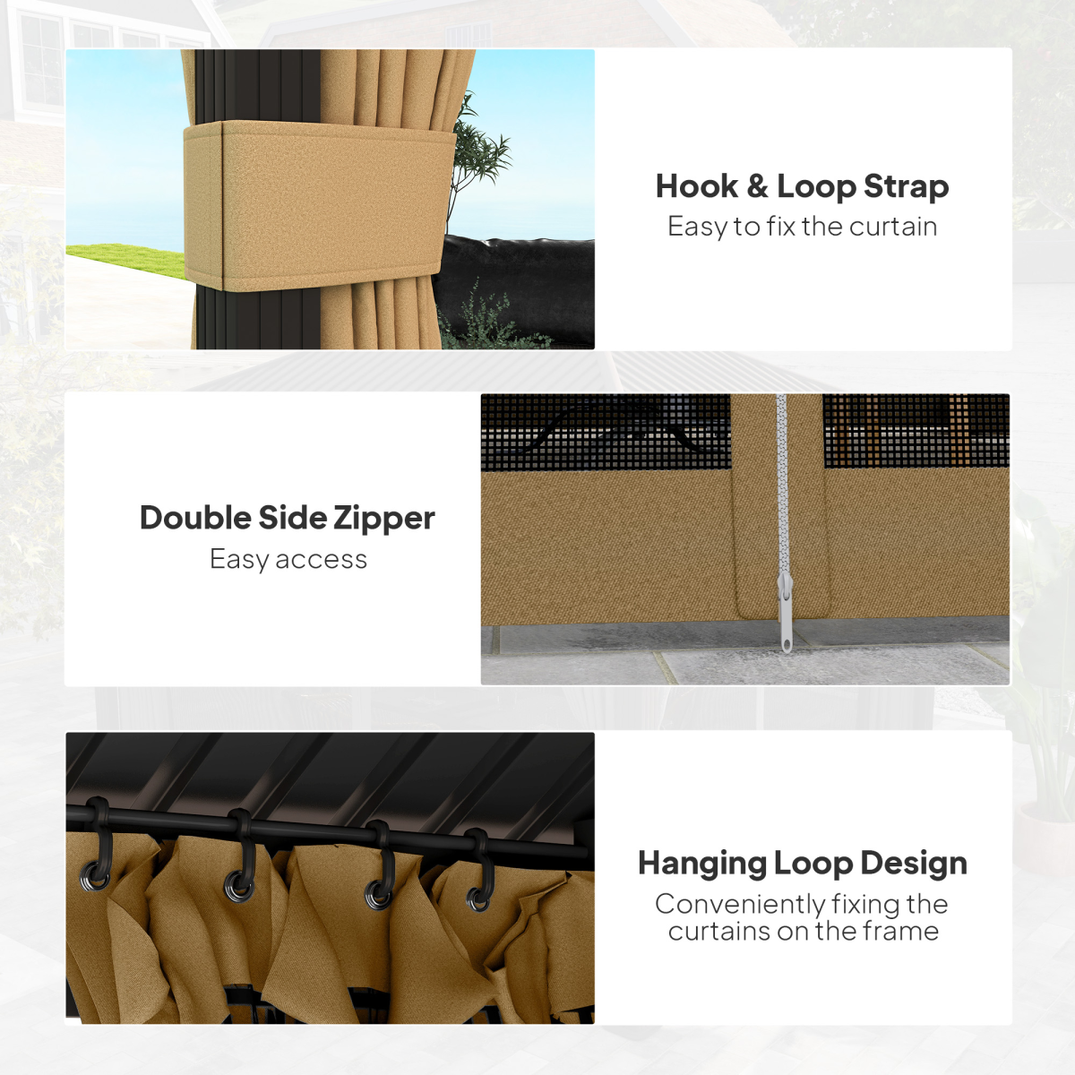 3.6x3m Metal Hardtop Gazebo with Curtains - Brown