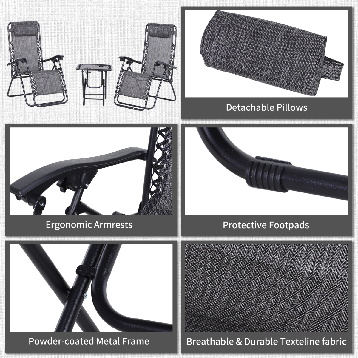 3-Piece Zero Gravity Chair Set with Table - Light Grey