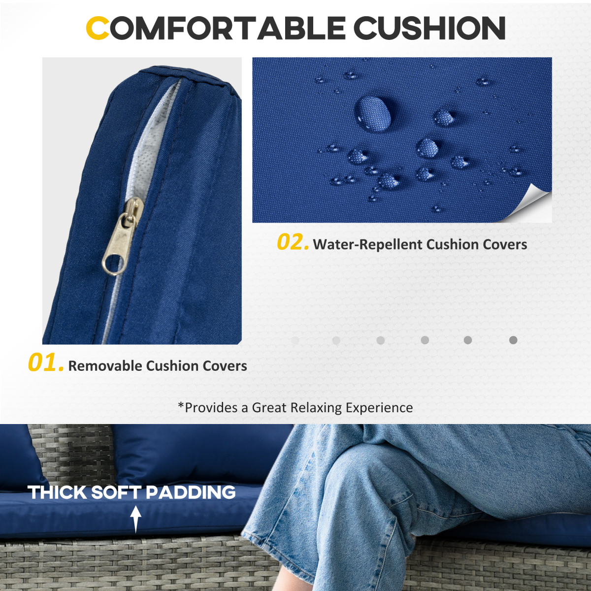 5-Piece Rattan Dining Corner Sofa Set Dark Blue