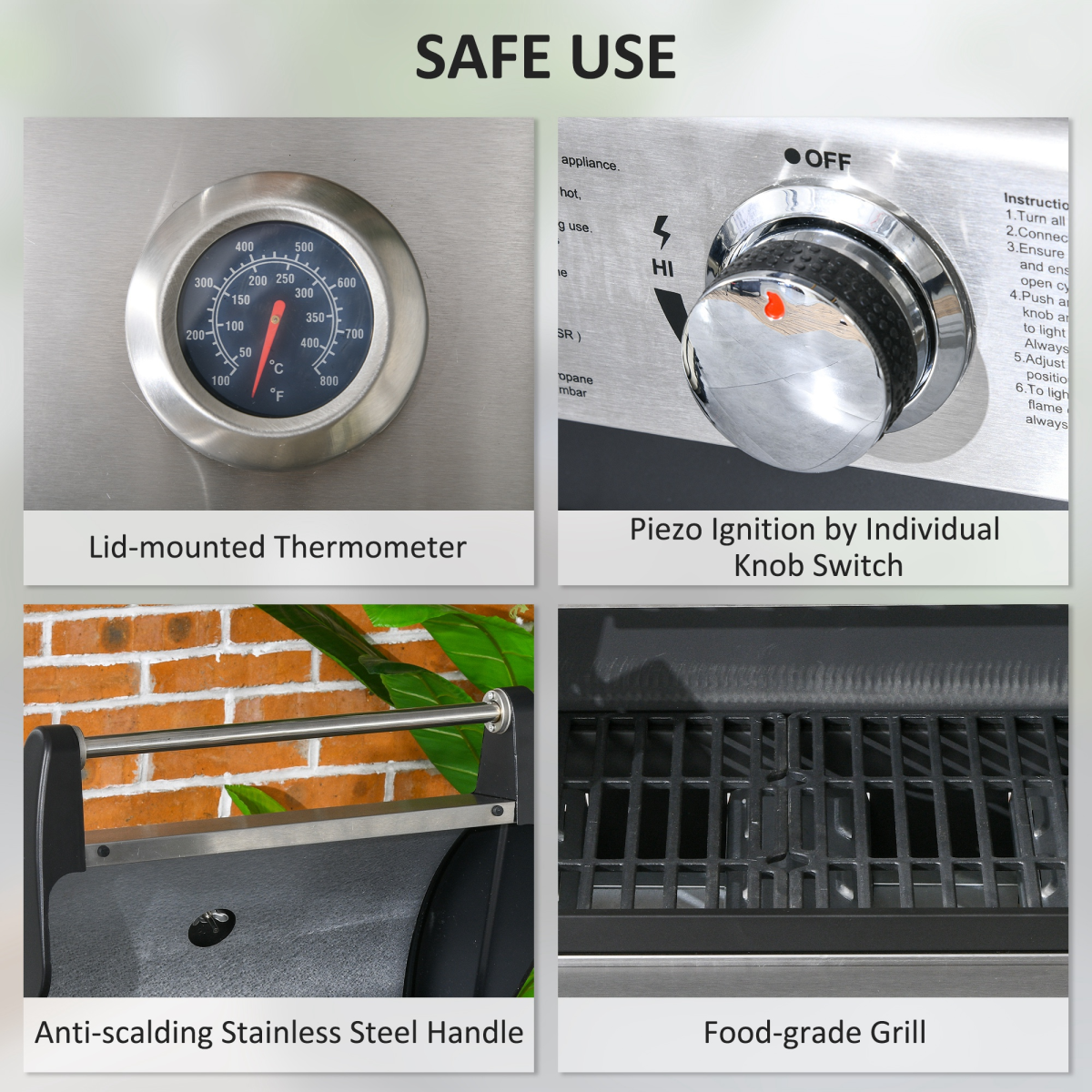 Crafted from a combination of durable stainless steel and metal, this BBQ grill is designed to withstand the elements while maintaining its sleek appearance. The cool-touch handles ensure safety during use, preventing burns when reaching for your favorite grilled dishes. The built-in thermometer on the lid allows for precise temperature control, ensuring that every meal is cooked to perfection. Plus, with two wheels, this grill offers effortless mobility so you can easily set it up anywhere in your outdoor space.