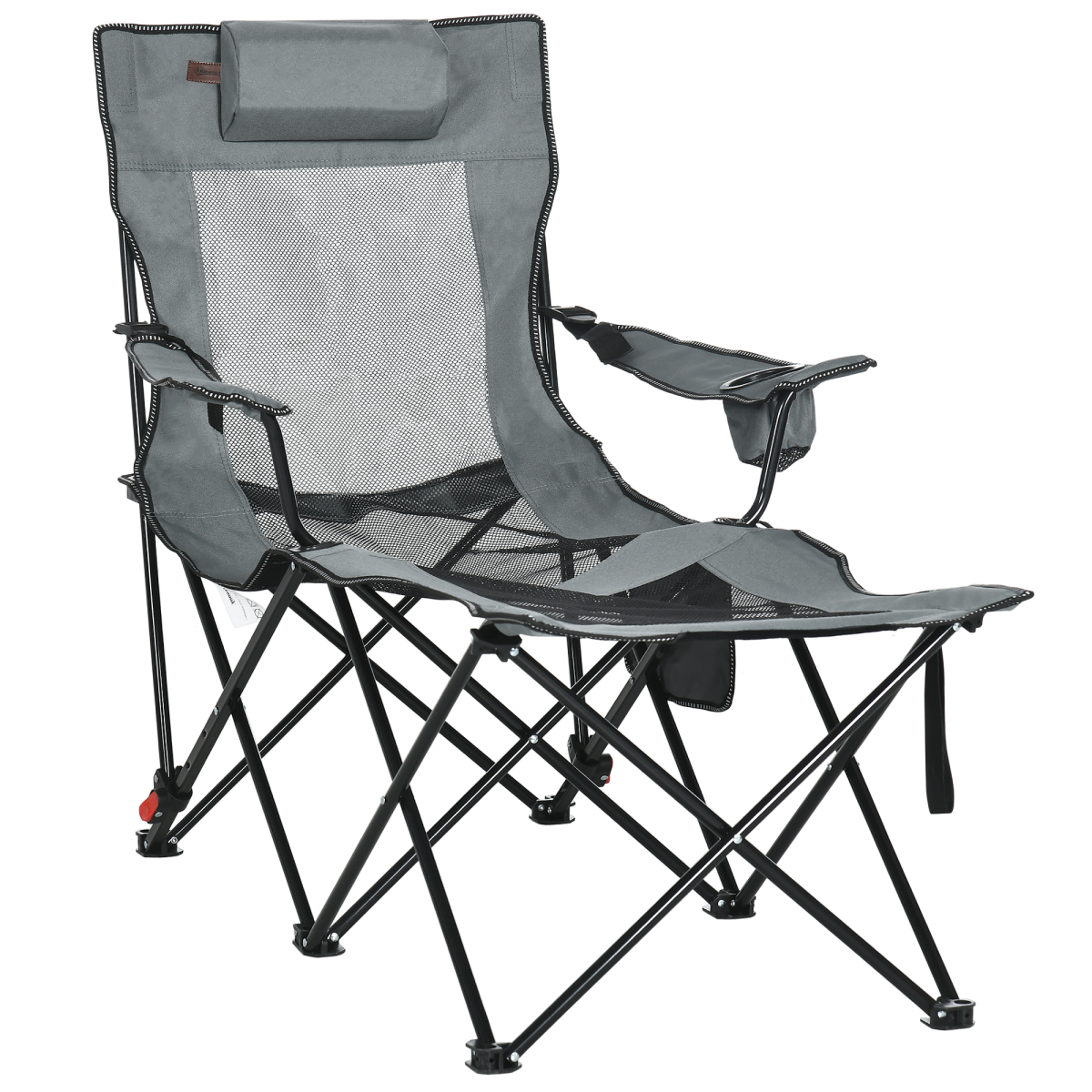 Folding Camping Chair with Footrest & Adjustable Backrest - Grey