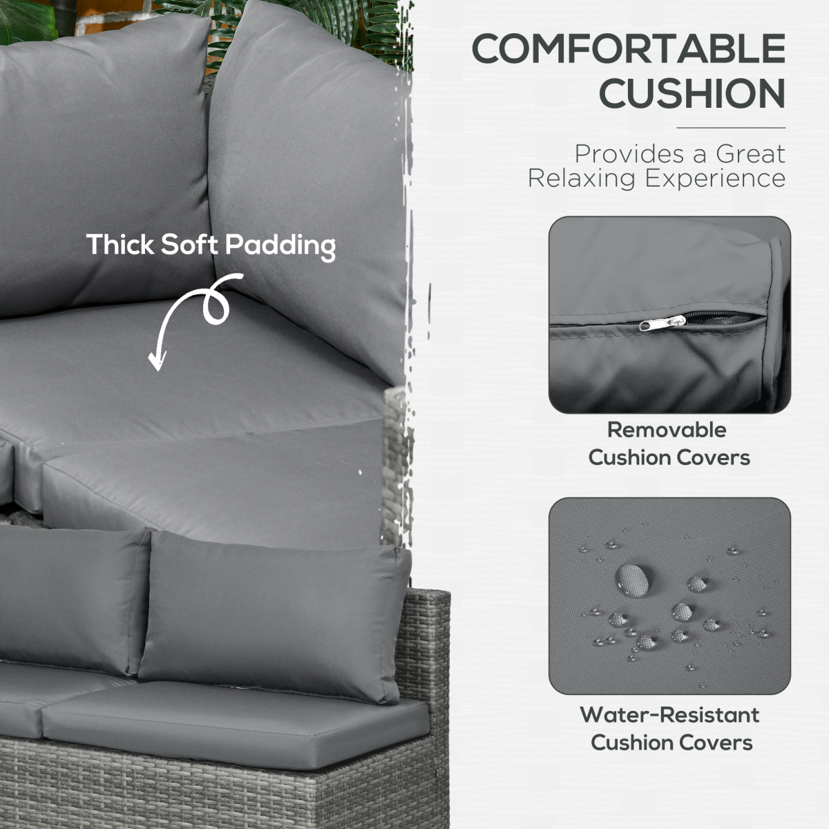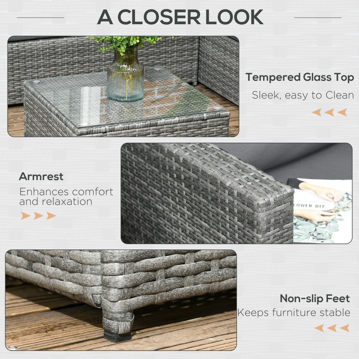 Transform your outdoor space with the Outsunny 3-piece Rattan Corner Sofa Set. Perfect for lounging in style, this versatile furniture set is ideal for gardens, patios, or balconies. With its unique corner design, the sofa can also be arranged in a straight line to suit your space preferences. Built on a sturdy metal frame for enhanced durability, the set is wrapped in high-quality plastic rattan, giving it a chic garden look while ensuring it withstands the elements.