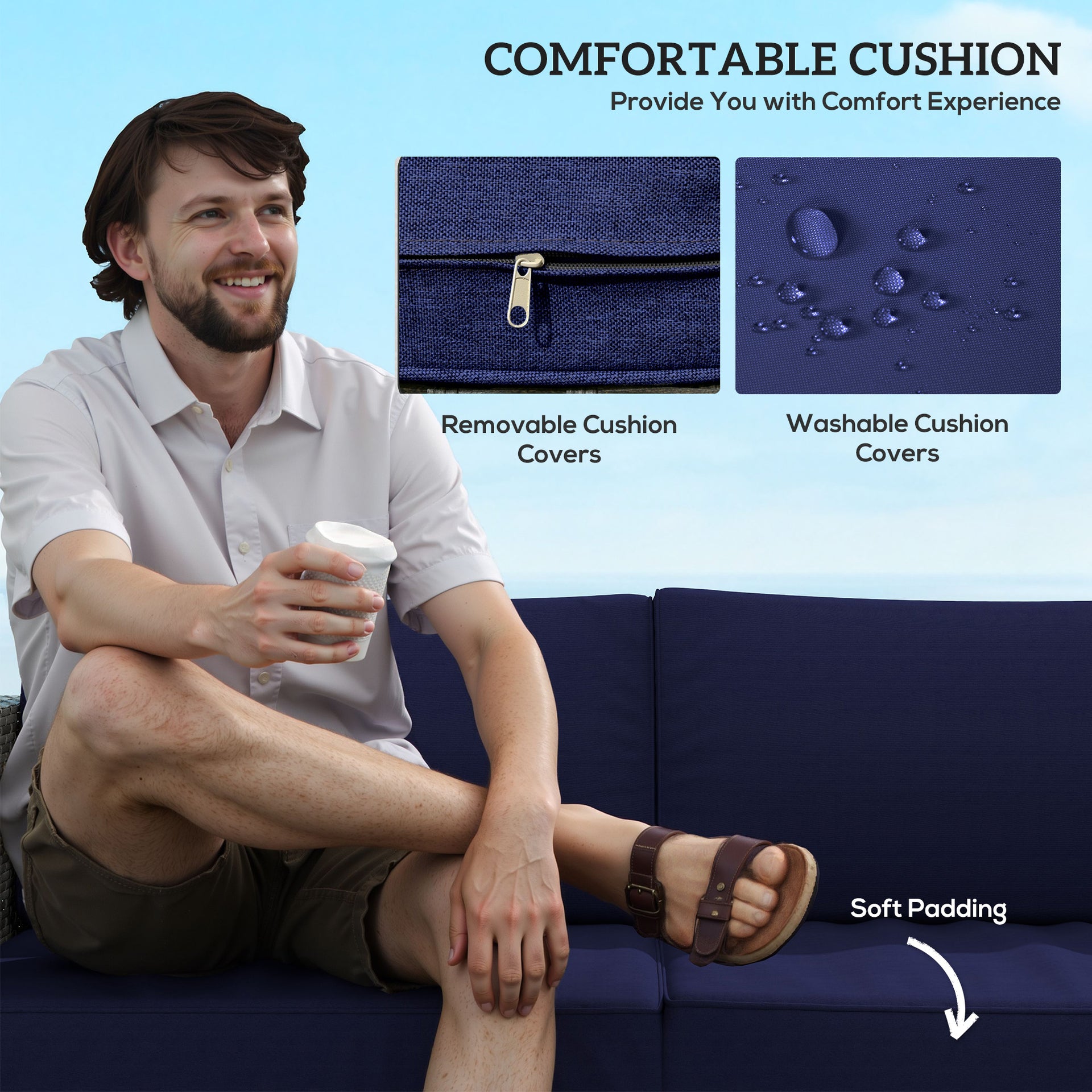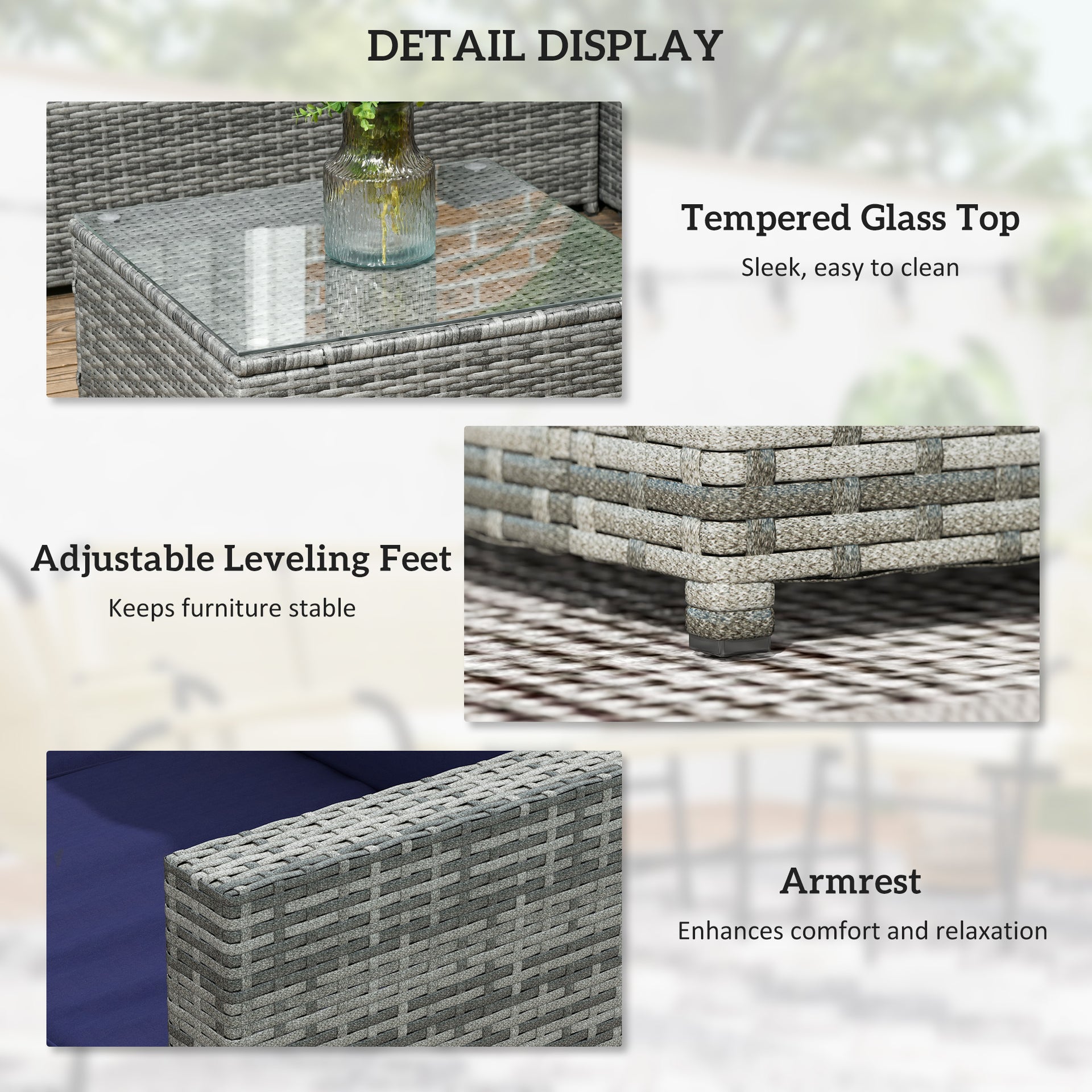 Elevate your outdoor living experience with the Outsunny 3-Piece Rattan Corner Sofa Set. Perfect for lounging in style, this versatile seating arrangement can be configured as a corner sofa or extended to suit your space. Crafted with a robust metal frame wrapped in high-quality plastic rattan, this set not only enhances your garden aesthetic but also promises exceptional durability.
