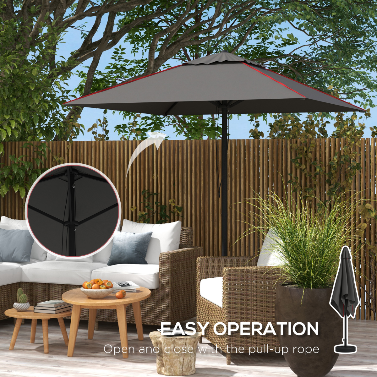 Beat the heat this summer with the Sun Parasol. Designed to provide ample shade, this stylish umbrella features high-quality polyester fabric that protects you from the harsh rays of the sun. The robust powder-coated steel frame ensures durability and stability, making it perfect for your patio, garden, or poolside. Easily open and close the canopy using the convenient pull-rope mechanism, and keep it grounded with a minimum 25kg weighted base for maximum safety.