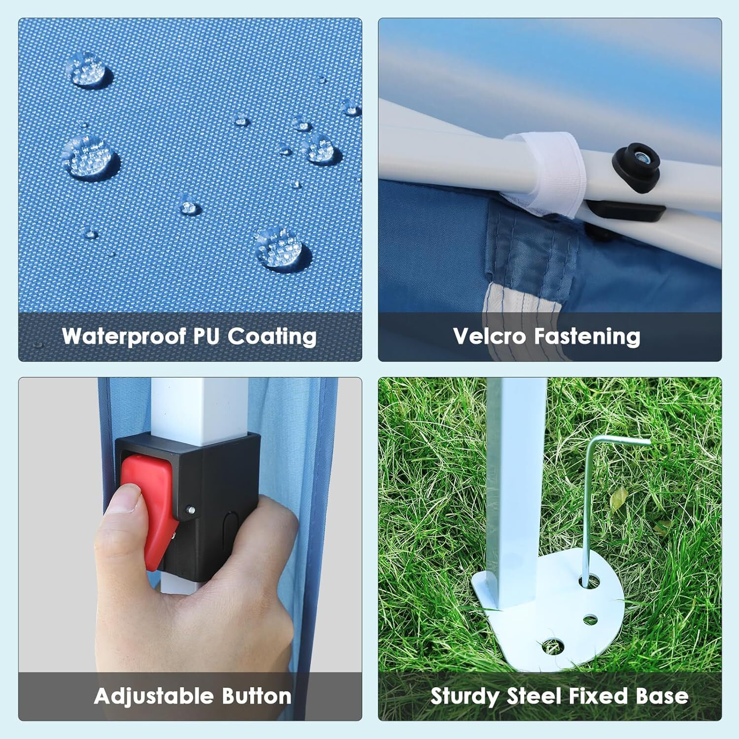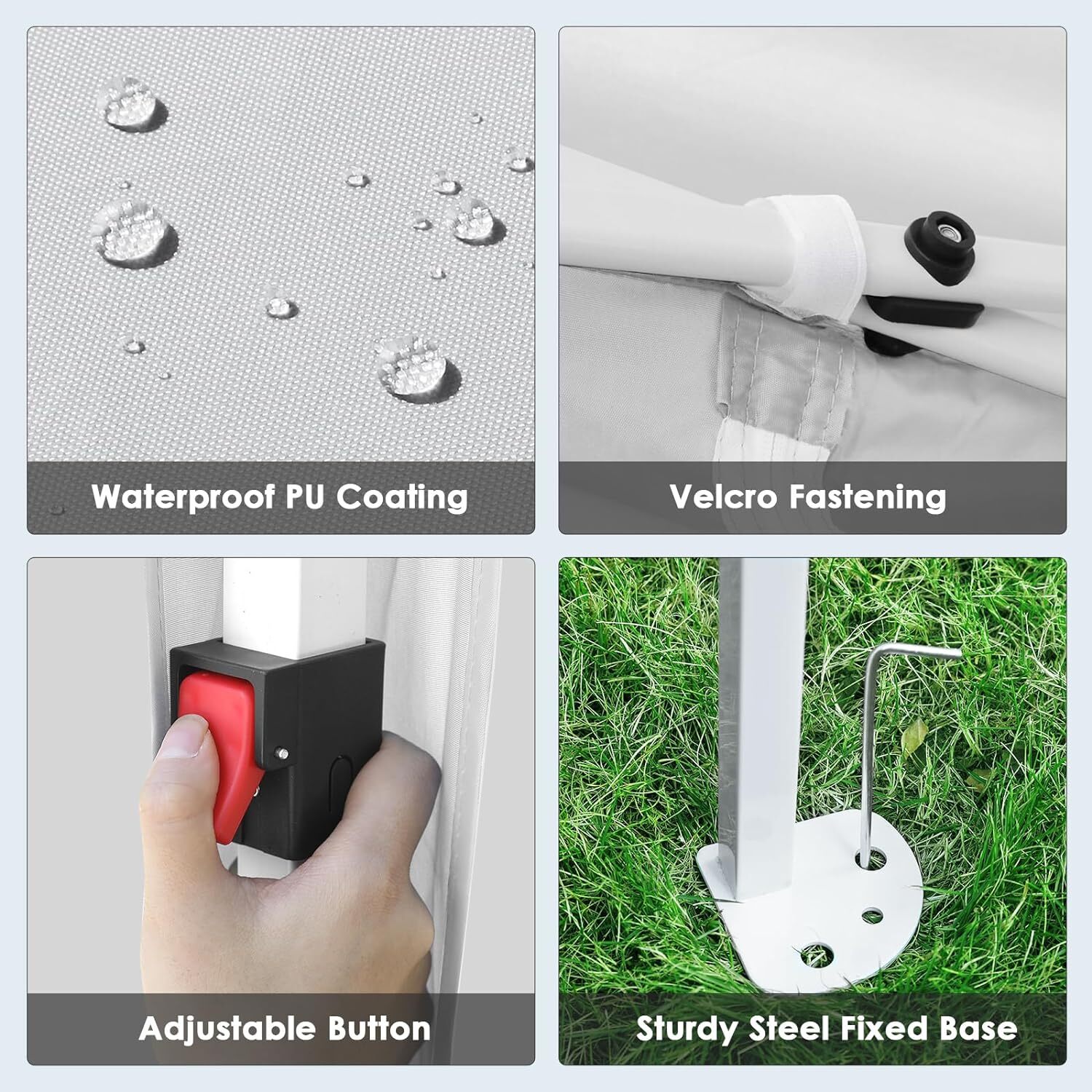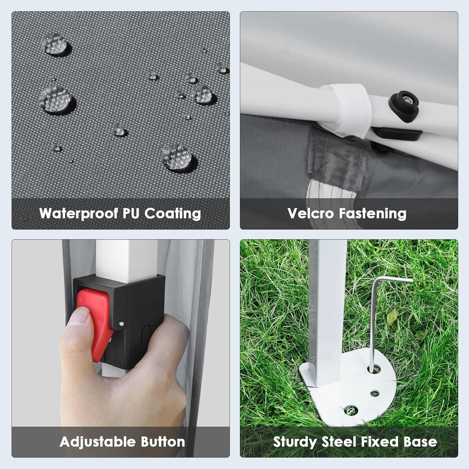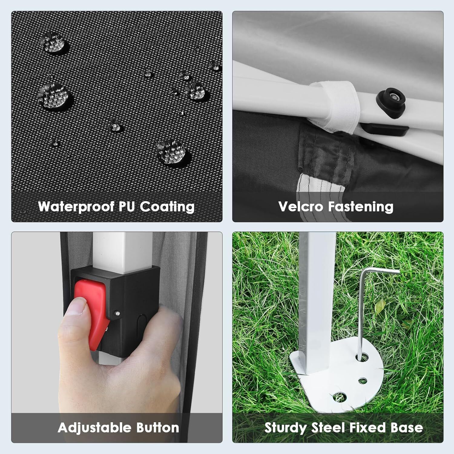 Height adjustment design: folding gazebo 3 x 3 waterproof stable. Each leg has up and down quick release buttons, which can be easily folded and adjusted in height (250 cm, 260 cm and 270 cm). Note: Please be careful when adjusting the height to avoid pinching your fingers. The long-term use of the pop-up gazebo extreme weather conditions (such as Ststorms), it is recommended to fold the garden gazebo and store indoors.