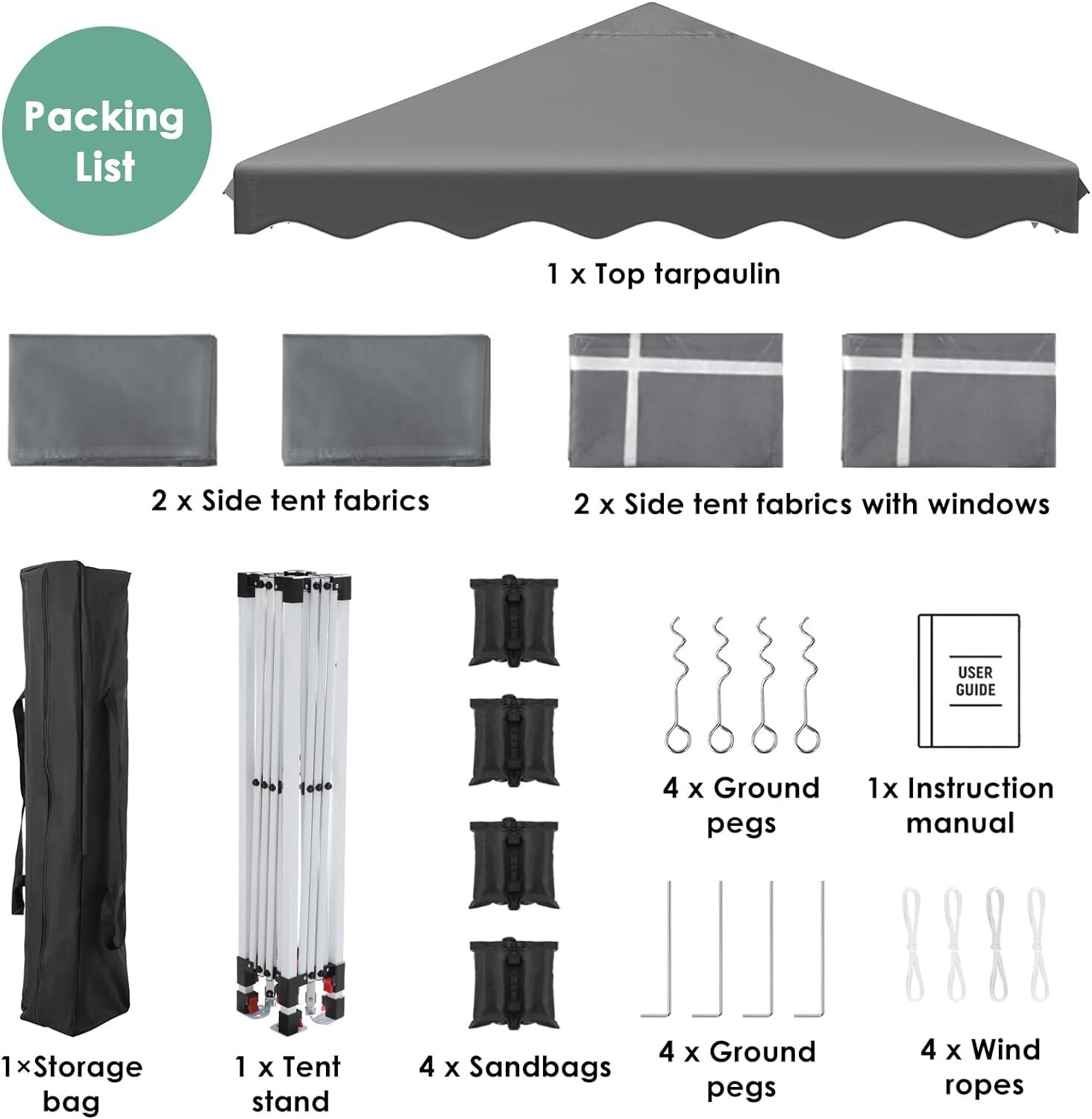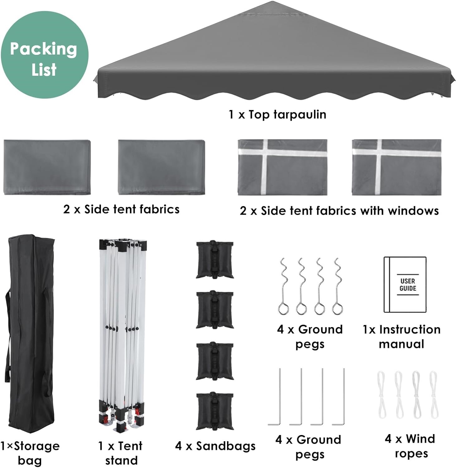 Pop up Canopy with Sidewalls Gazebo 3X3M