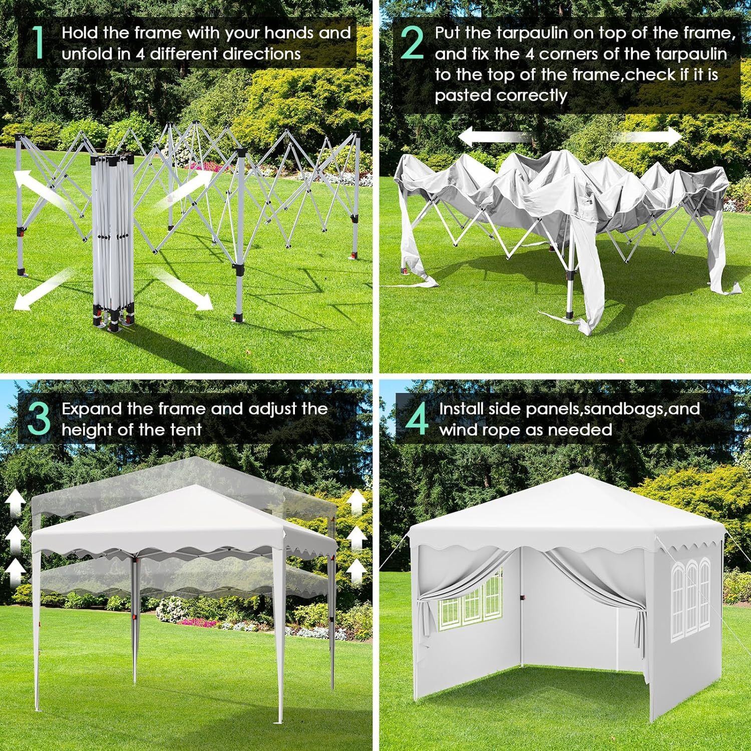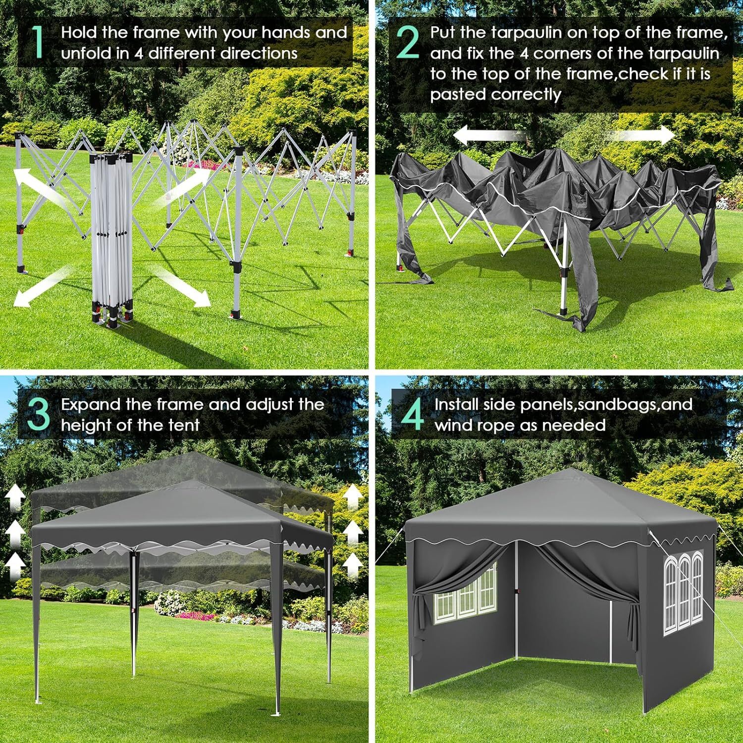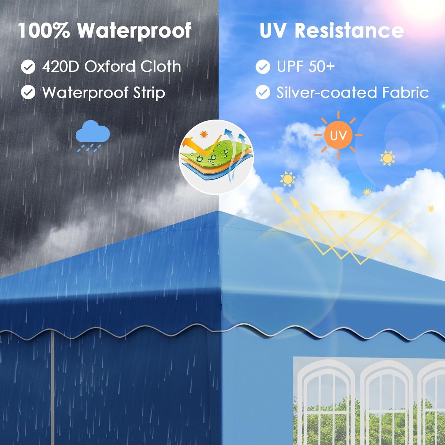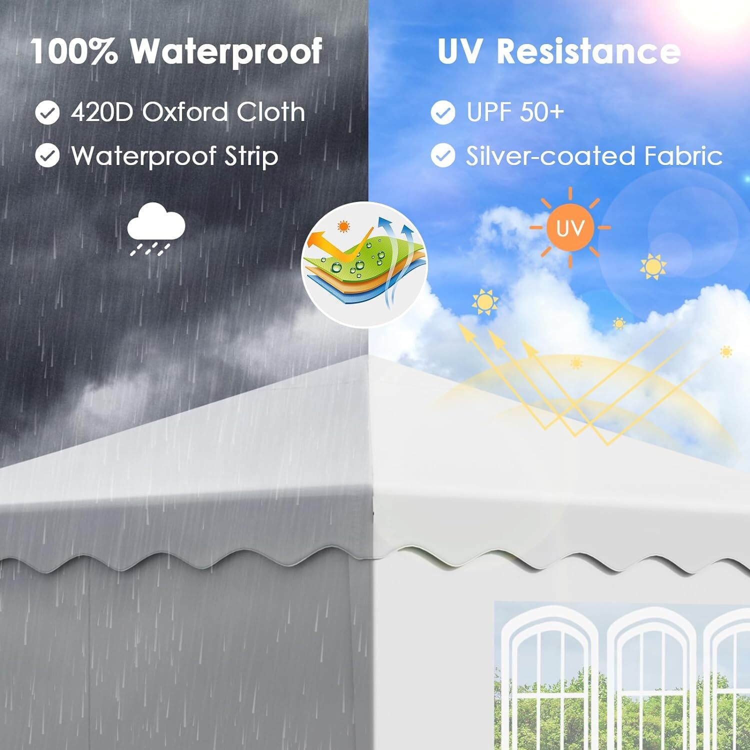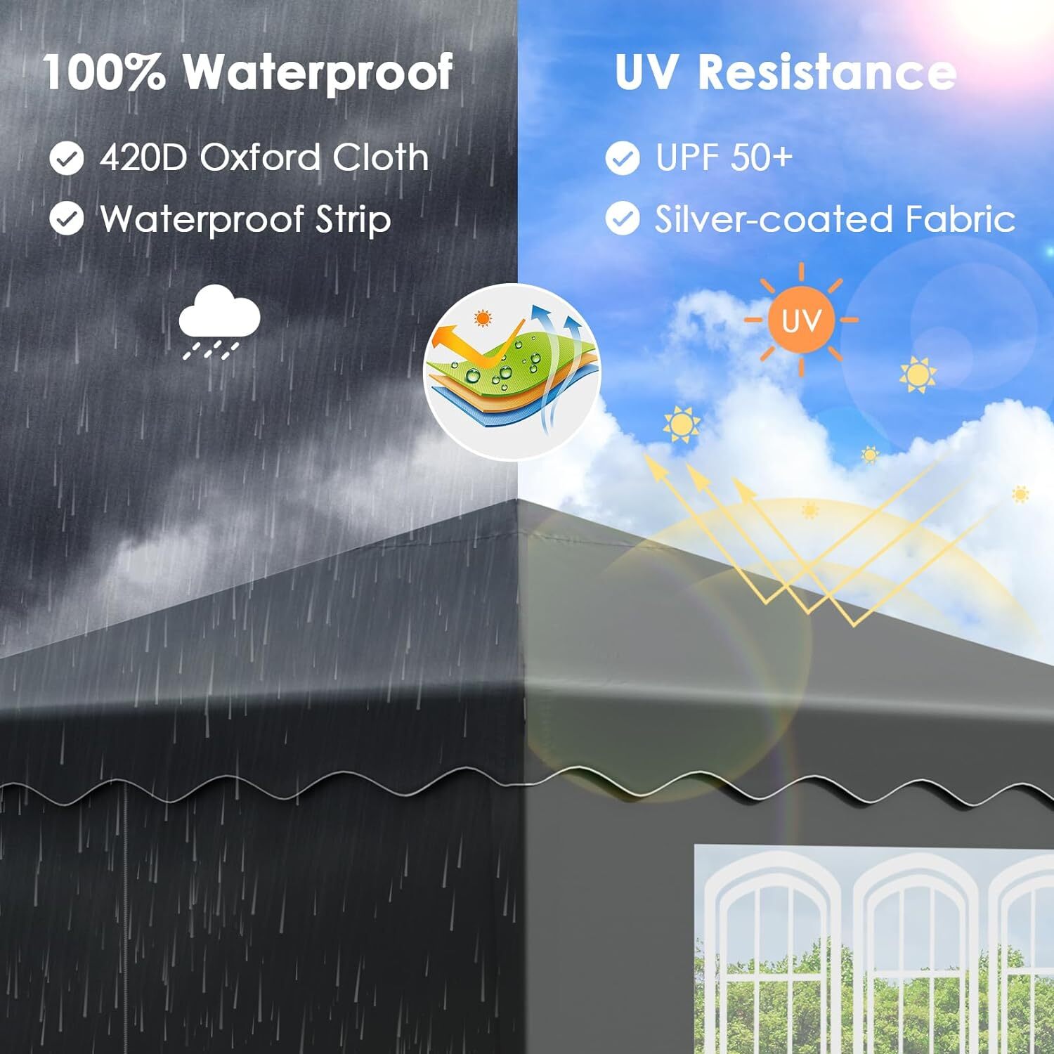 402D high-quality material: the canopy tarpaulin is made of high-density 420D Oxford fabric, with a silver-plated PU, lining is water-repellent and UV 50+. All seams are sealed and it keeps a 100% waterproof, improve comfort in your garden or on your terrace. 2 of 4 side panels are equipped with transparent windows, so you get beautiful light rays in the tent. Even in cold winter, when all side walls are covered, you can enjoy good lighting conditions. The side walls are removable.