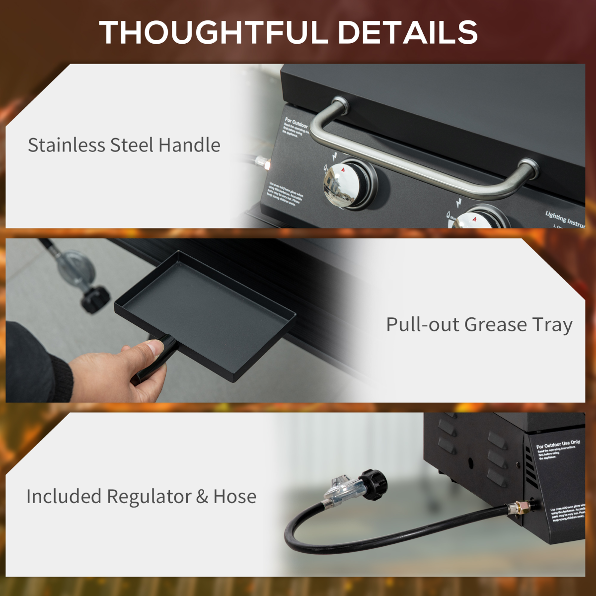 Portable 2-Burner Gas BBQ Grill with Lid & Thermometer