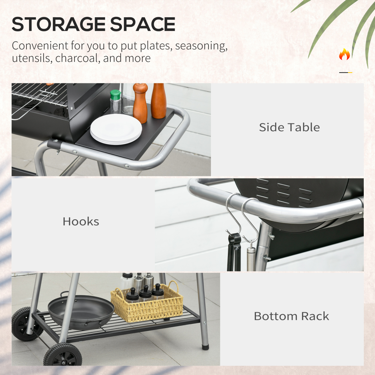 Constructed from 550°F heat-resistant steel, this BBQ grill provides exceptional durability while ensuring that your food achieves that mouth-watering smoky flavor every food lover craves. The adjustable height feature allows you to set the grill to three different levels, ensuring safe and efficient grilling. With a built-in table and a spacious storage shelf, you’ll have plenty of space for your cooking essentials, making this grill not just a cooking tool but an essential outdoor companion.