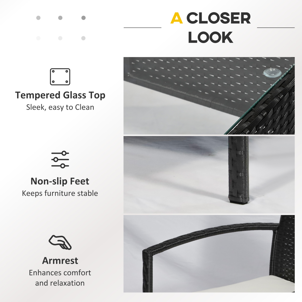 4-Seater Black & Cream Rattan Garden Furniture Set