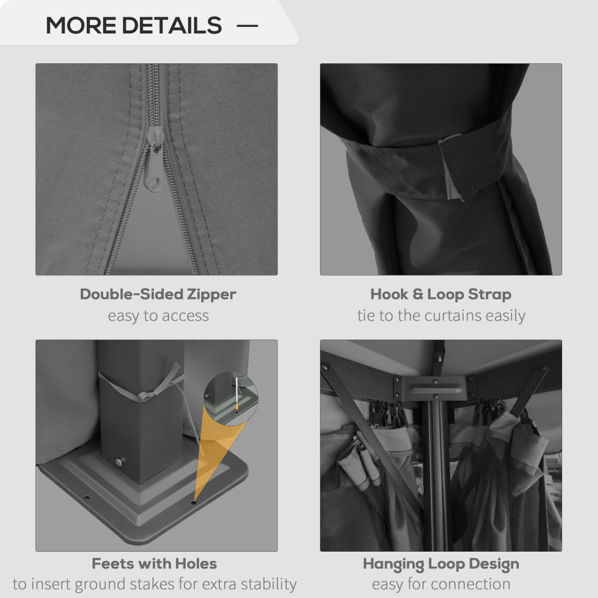 In addition to its visual appeal, this gazebo features curtains with inner netting that offer privacy while protecting you from pesky insects. Complete with anchoring accessories for secure installation, this garden pavilion is your go-to solution for stylish outdoor enjoyment.