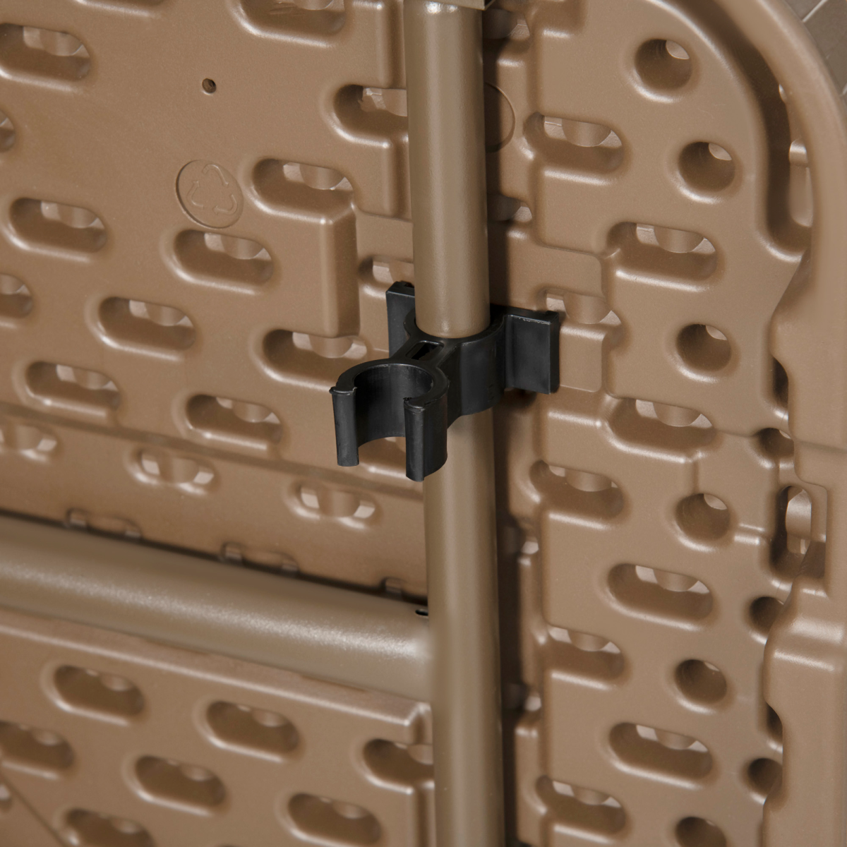 The rattan-look finish creates a stylish woven appearance while being constructed from durable thick plastic. This resin rattan dining set not only enhances the aesthetic of your outdoor area but also boasts resilience and sturdiness, making it ideal for everyday use.
