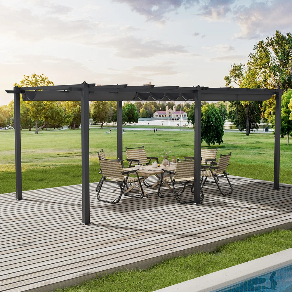 Hosting hearty backyard BBQs or dinner parties and transforming your space into an inviting haven become so much easier with this Garden Sanctuary Aluminum Patio Pergola. Crafted with a rust-resistant, powder-coated aluminum frame, the pergola boasts a reinforced structure to offer durability that can withstand the test of time. Comes with an UV-protected, windproof and watertight canopy, it provides optimal shade against the scorching sun. What is more, the canopy is retractable with a drawstring, allowing you to bask in the perfect summer ambiance.