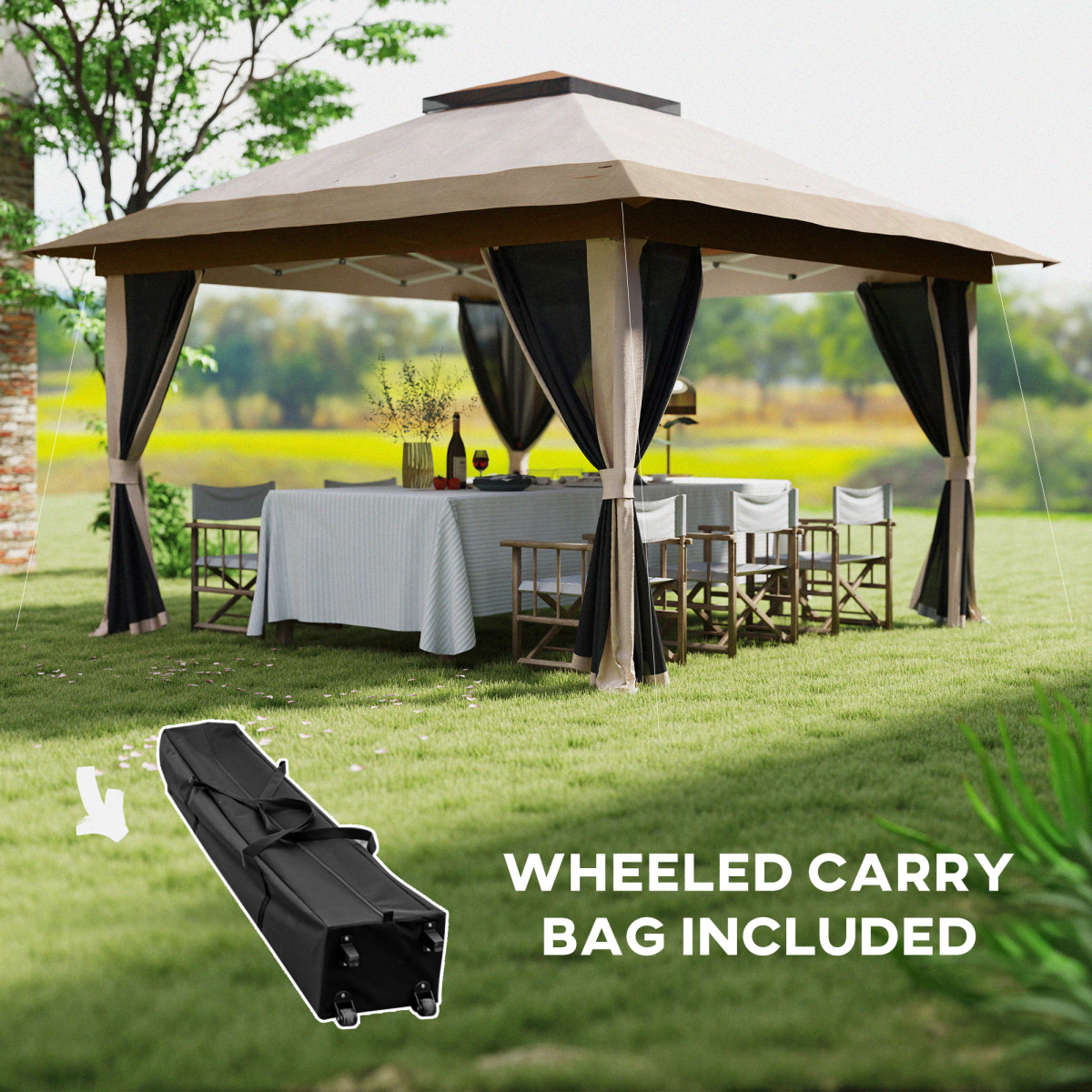 3.6m Pop-Up Gazebo with Netting & Wheeled Storage - UV Protection