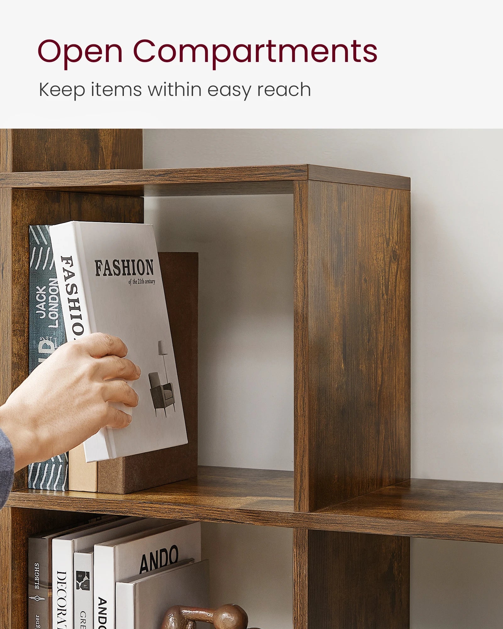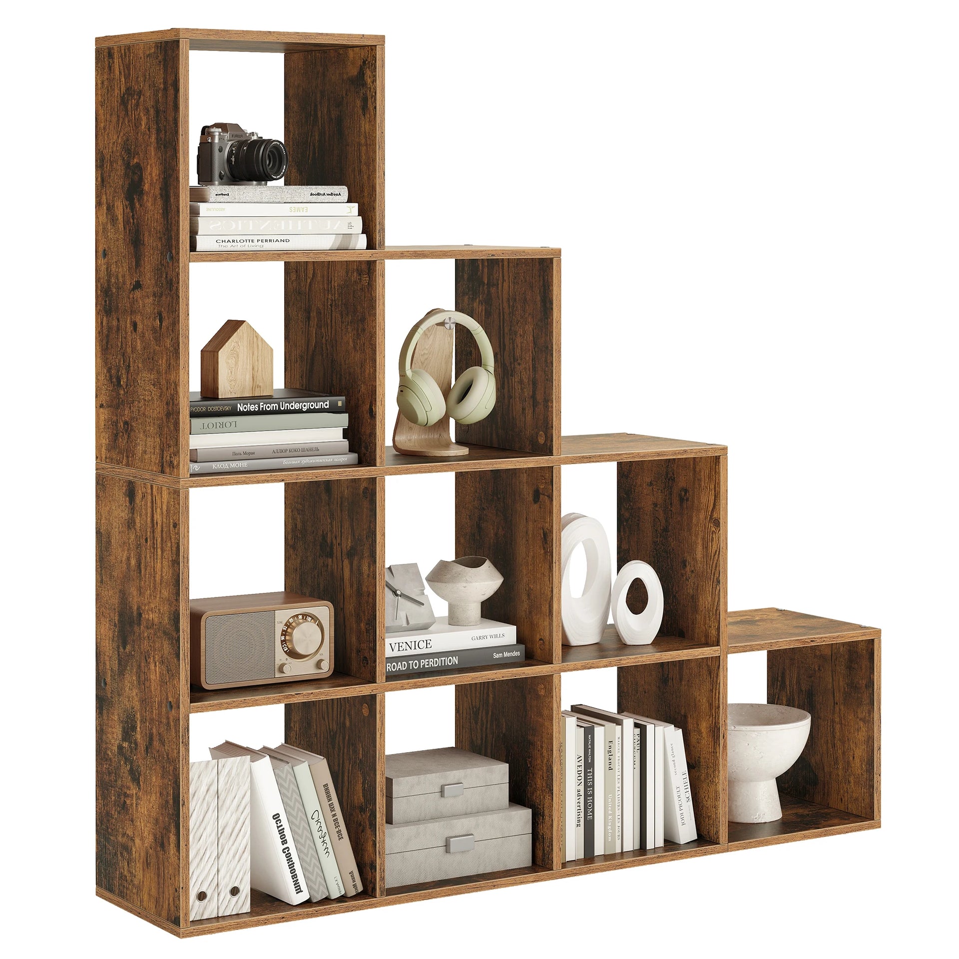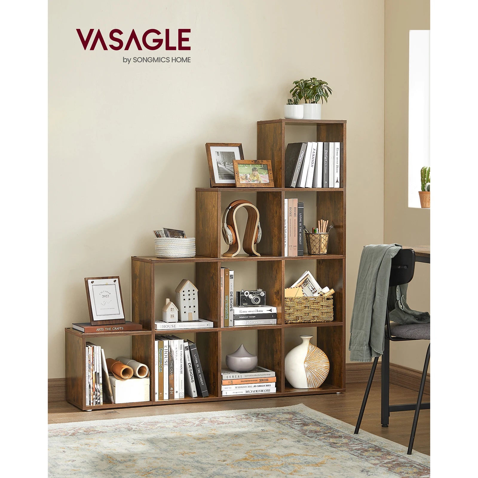 The 10 Tier Bookcase Open Shelf Storage Cabinet in Rustic Brown offers a spacious and stylish solution for organizing your books, decor, and essentials. Crafted from durable particleboard, it measures 129.5 x 29 x 129.5 cm, providing ample vertical storage without occupying excessive floor space. Each cube supports up to 10 kg, making it ideal for a variety of items. Weighing 27.3 kg, this sturdy unit includes an accessory bag and clear instructions for straightforward assembly. For safety, especially in homes with children or pets, it is recommended to install the included anti-toppling device. Maintain its finish by cleaning with a damp cloth and drying thoroughly. This bookcase combines functionality with a rustic aesthetic to enhance any room.
