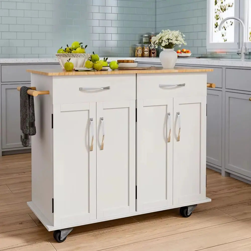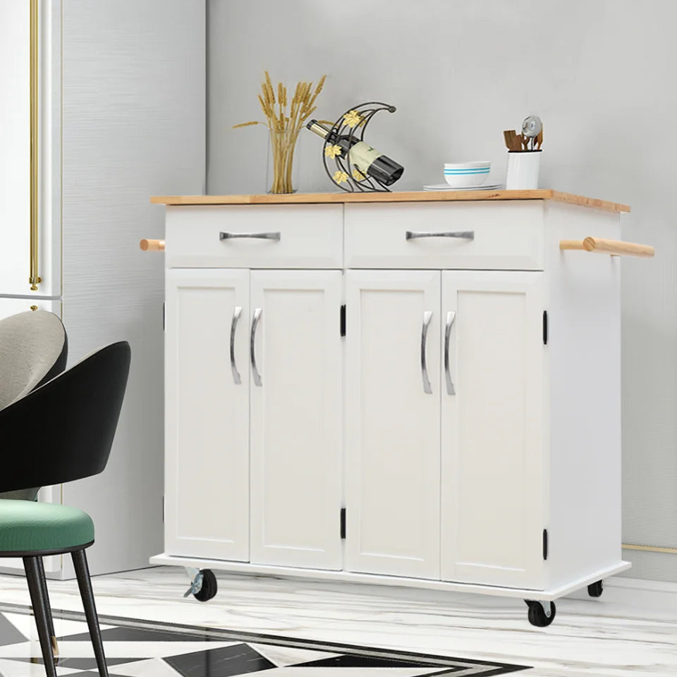 2 Drawers Kitchen Mobile Trolley Storage Cabinet,White
