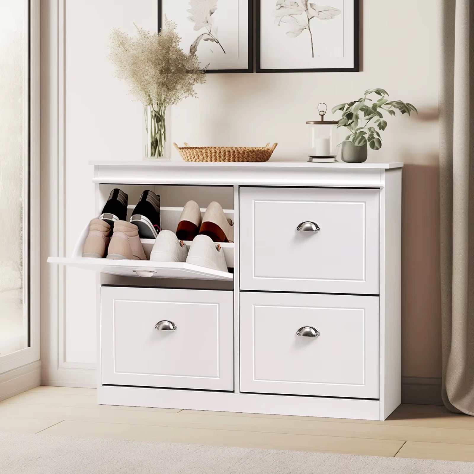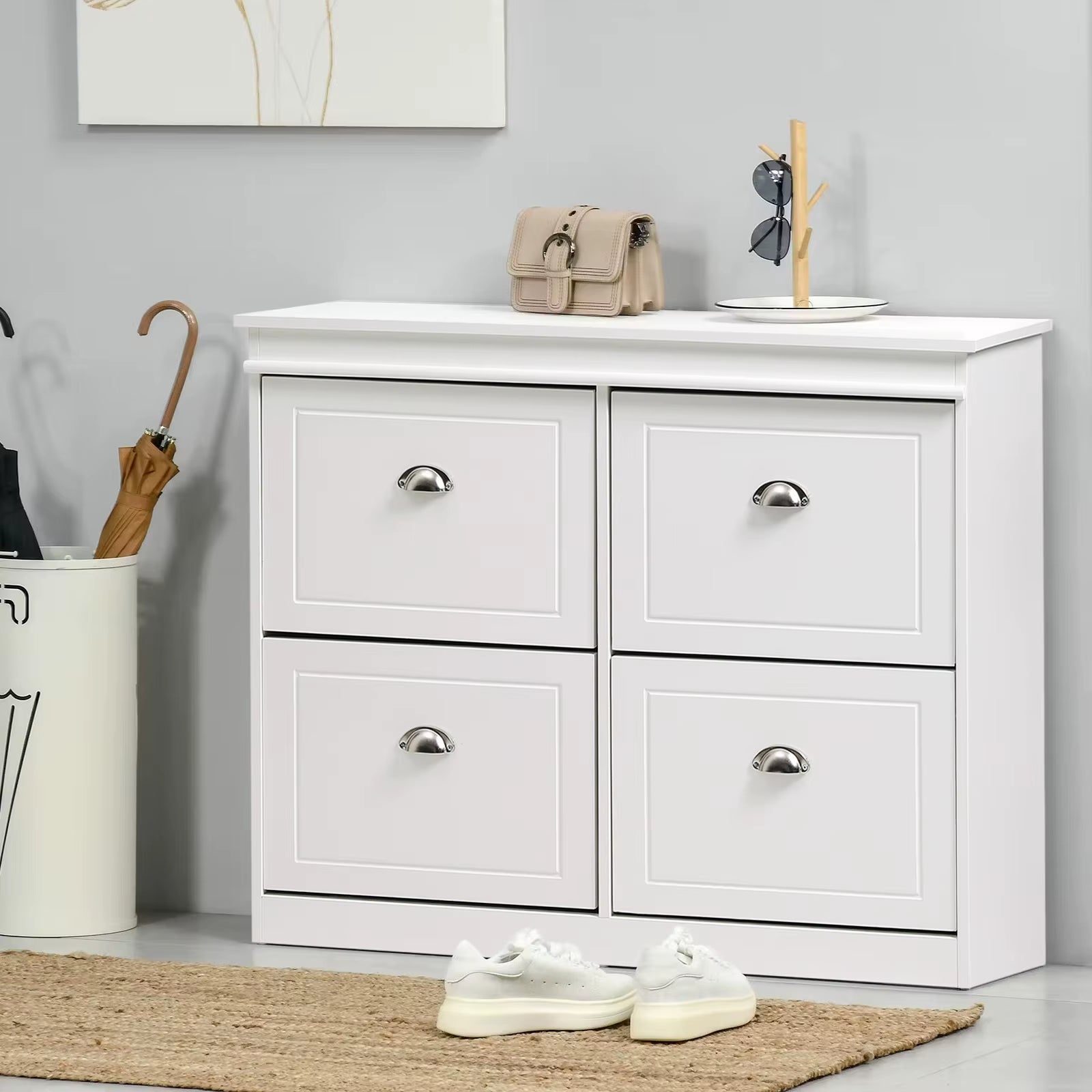 2 Tier White 4 Drawer Flip down Wooden Shoe Bench Cabinet