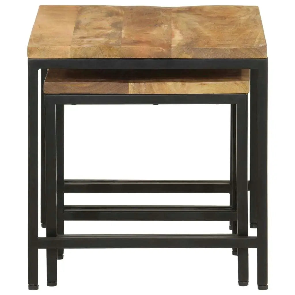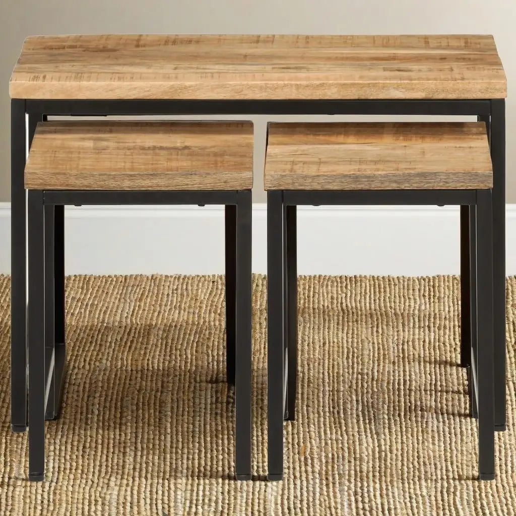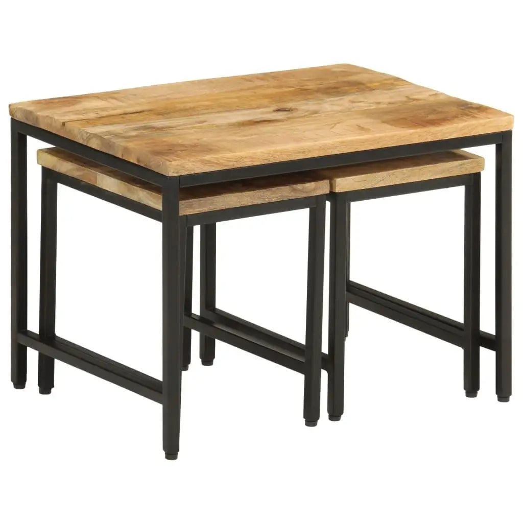 3-Piece Nesting Coffee Tables Set - Solid Rough Mango Wood & Durable Iron Frame