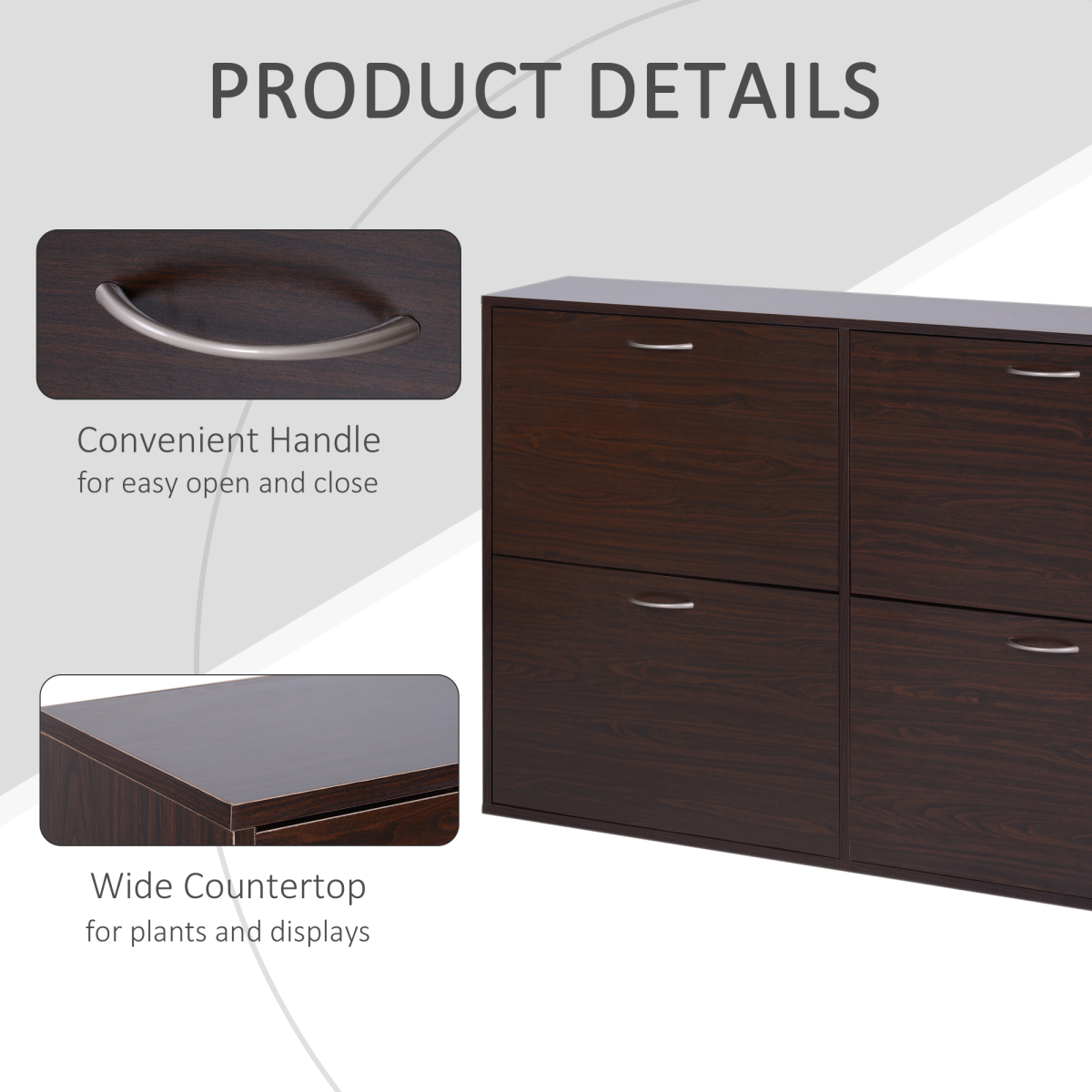 4 Drawer Shoes Cabinet Pull Down Shelf Storage Organiser Dark Brown