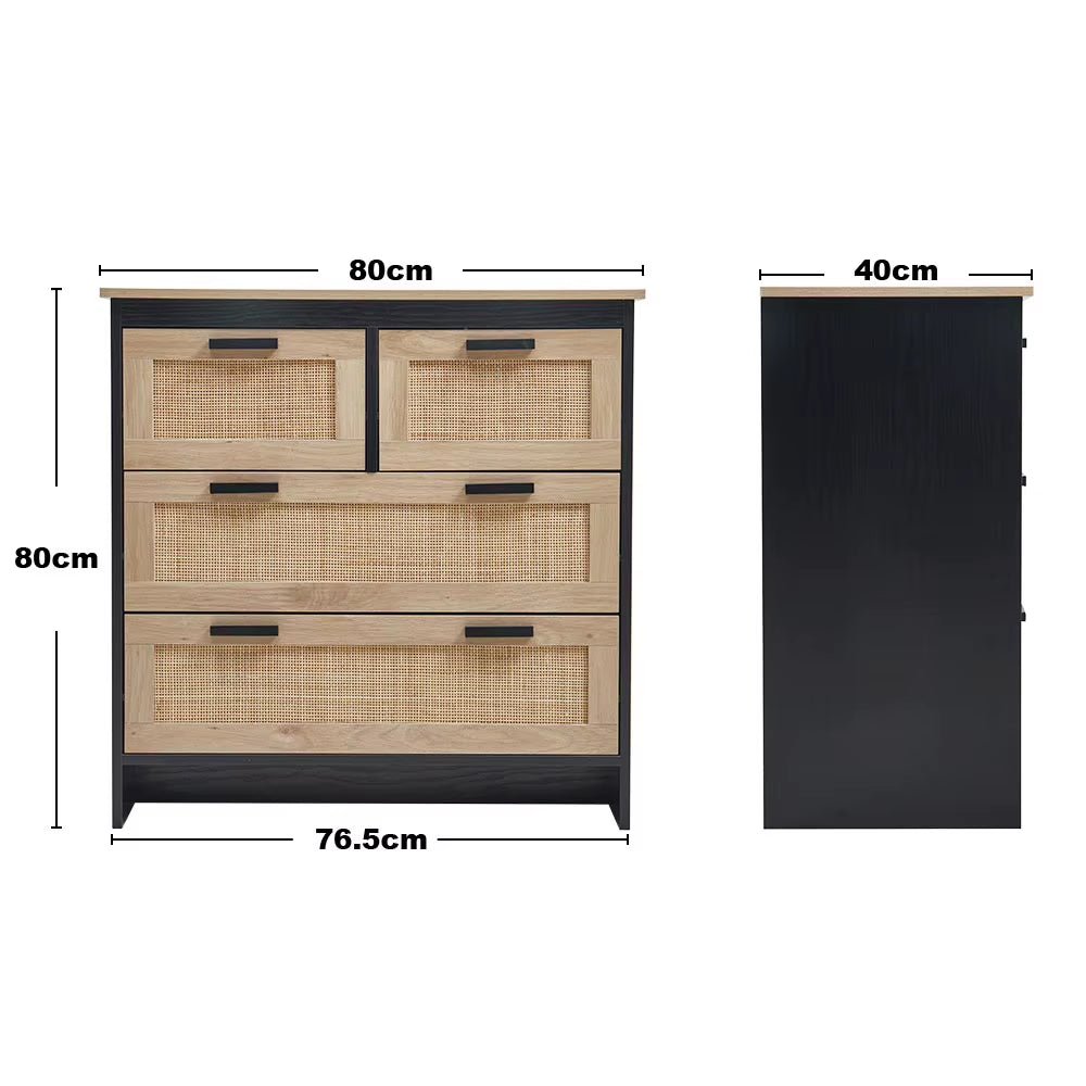 Enhance your entryway or living space with this Beige Wooden Storage Cabinet featuring rattan drawer fronts, expertly crafted by Livingandhome. The cabinet’s solid wood frame ensures durability and stability, while the natural cane drawers introduce a sophisticated Bohemian flair that contrasts beautifully with the painted beige finish. Designed for versatility, it fits seamlessly in hallways, living rooms, or offices. Four spacious drawers offer ample storage for organizing essentials, combining functionality with elegant style. Made from environmentally friendly wood materials, this cabinet is both safe and long-lasting. Some assembly is required to complete this chic, practical piece. Dimensions: 80cm W x 40cm D x 80cm H.