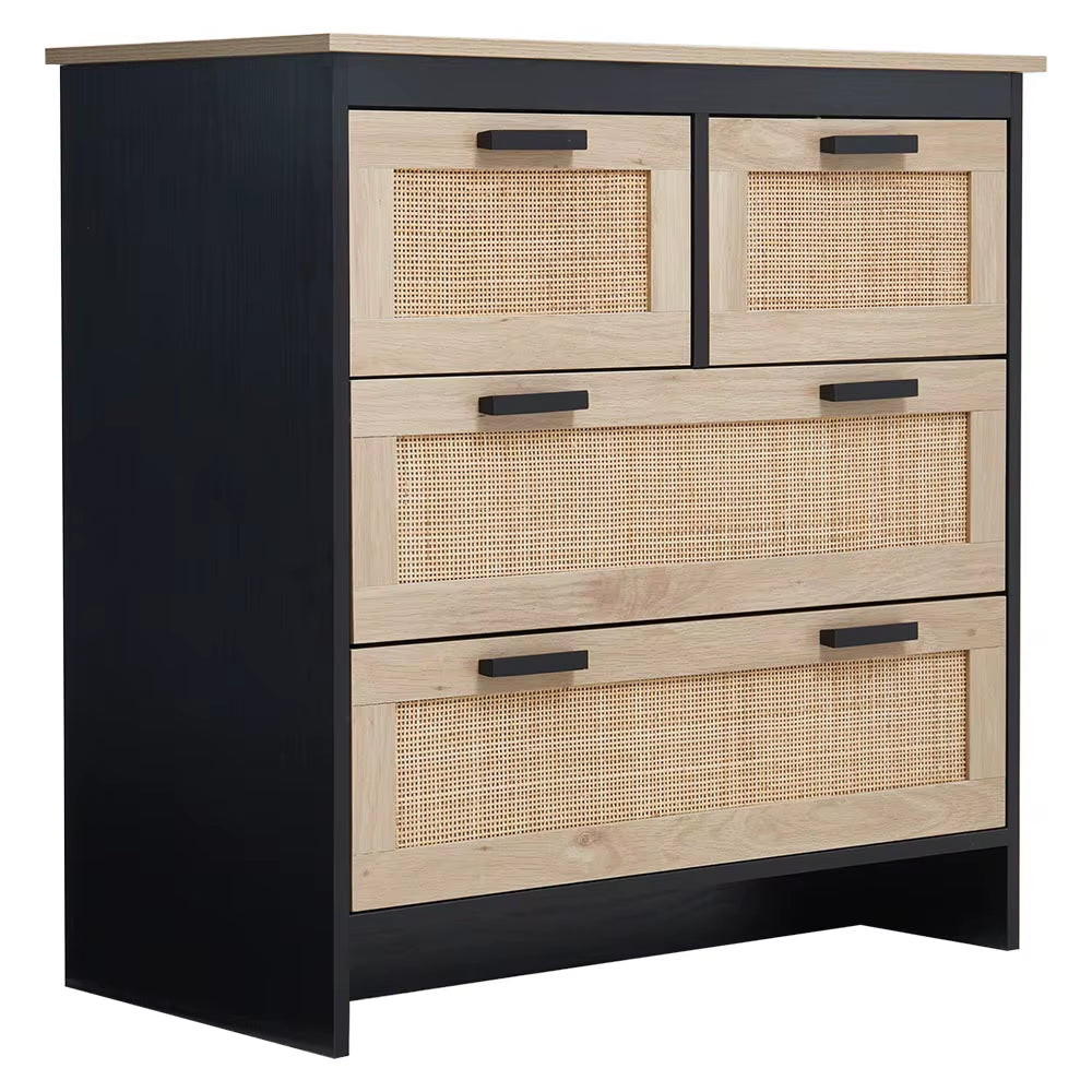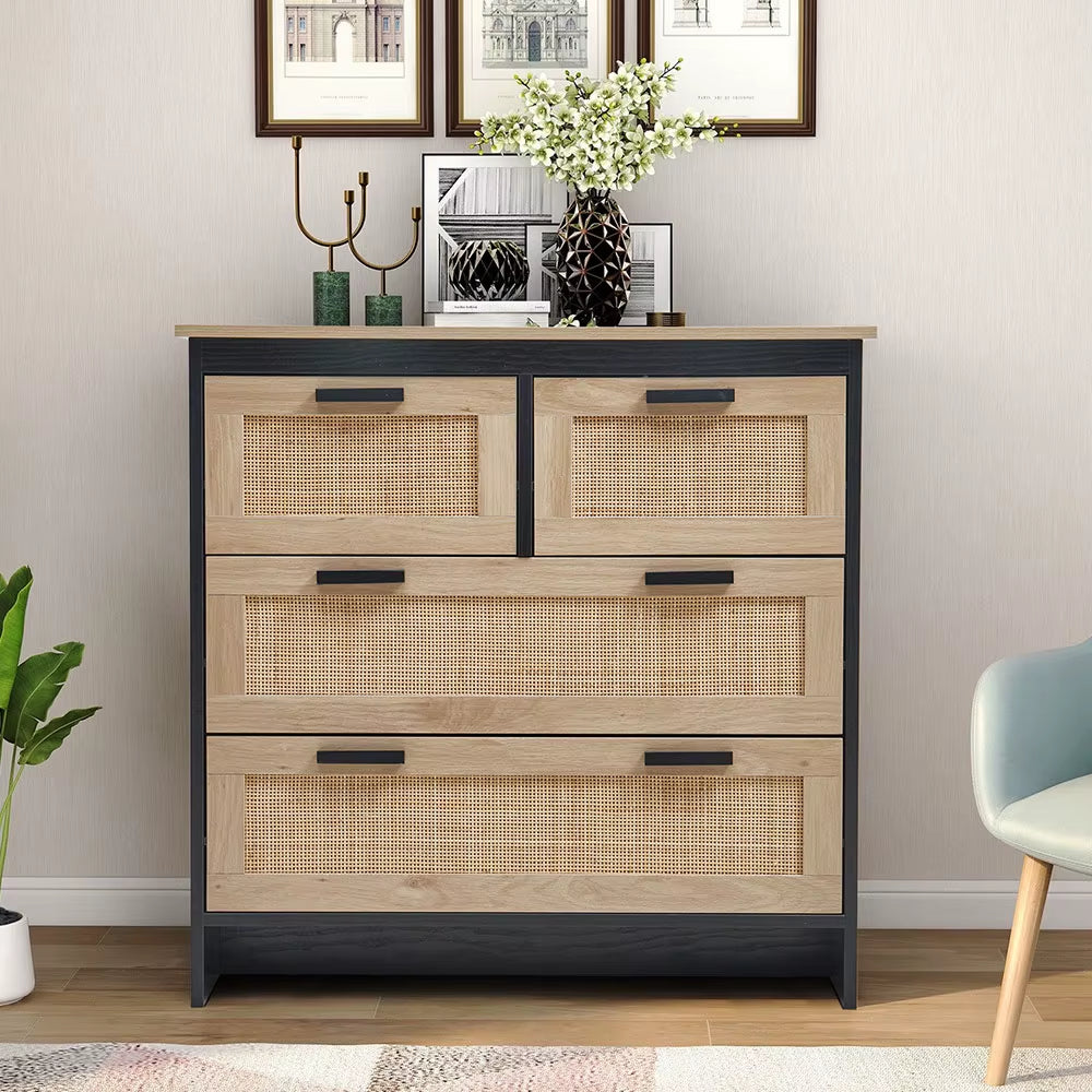 Beige Wooden Storage Cabinet with Rattan Drawer Console Table