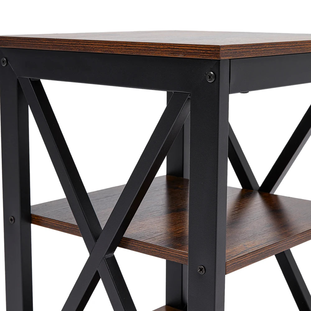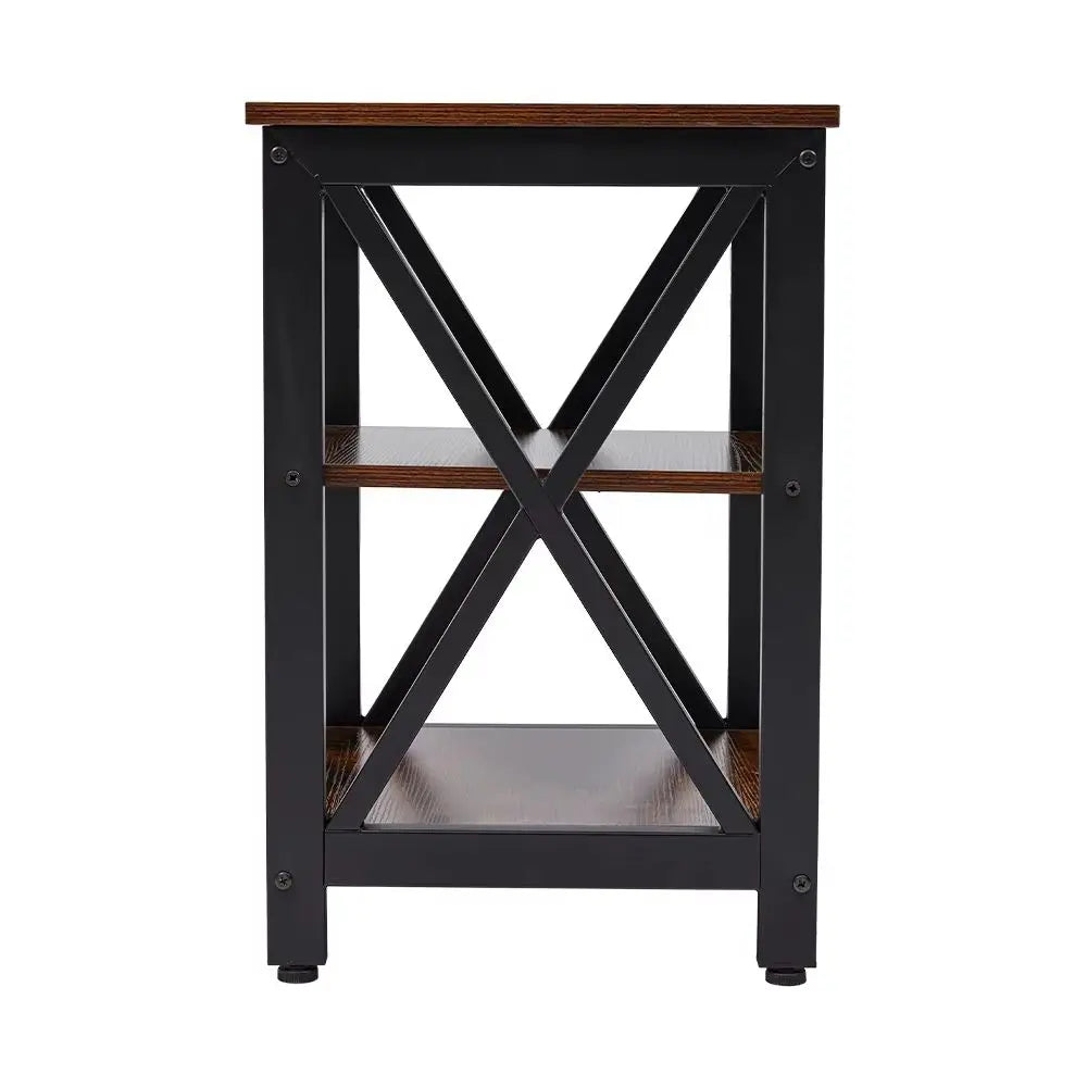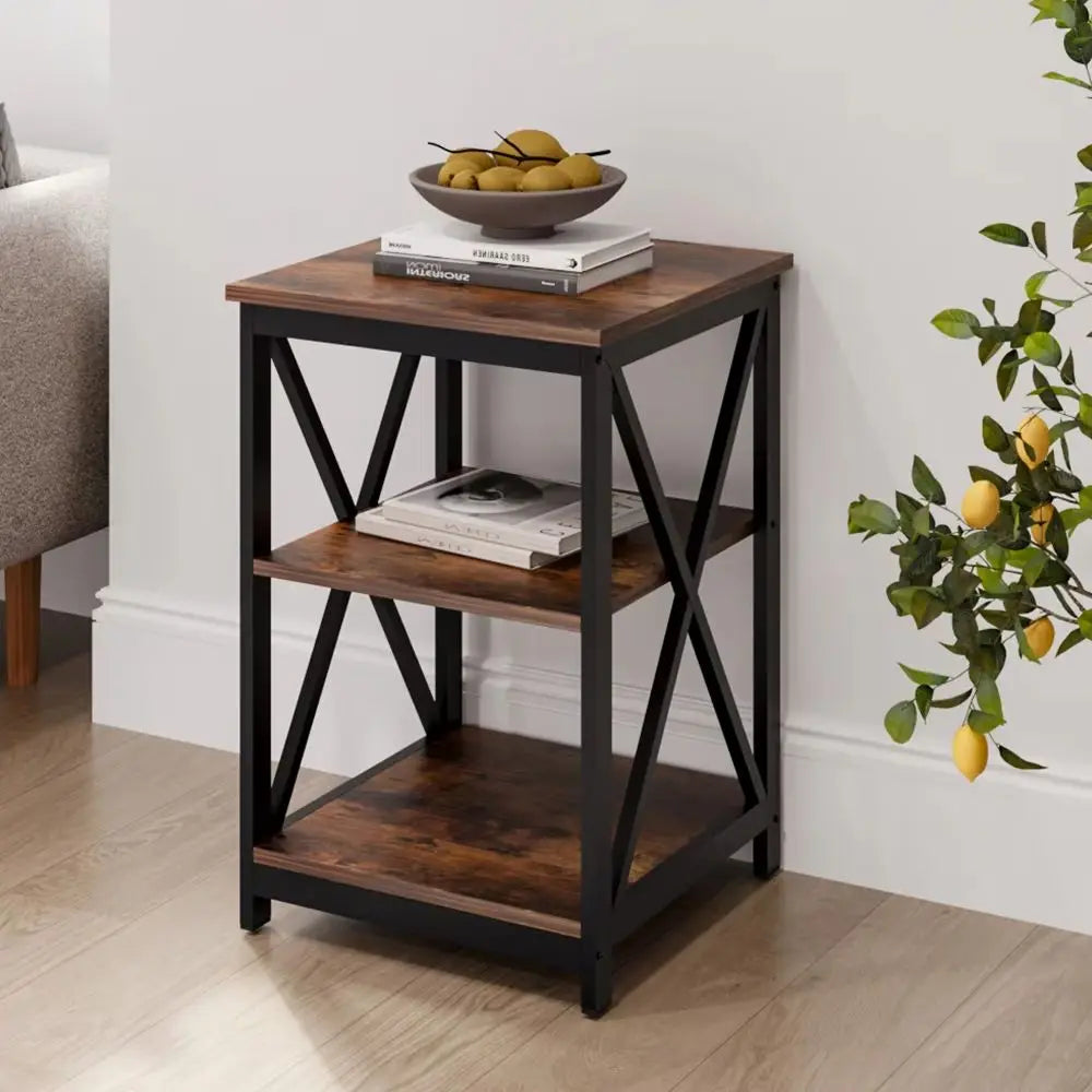 Place this Livingandhome compact side table next to the bed, sofa, or any other preferred spot to create a cozy nook. Its minimalist design is complemented by the clean lines, ensuring that it will not dominate the room, yet it offers a convenient top for your cup, mobile phone, snacks, or any item you want to keep within reach. Additionally, the table provides an ideal display area with 2 shelves for vases, art sculptures, and books, adding warmth and an artistic touch to your space.