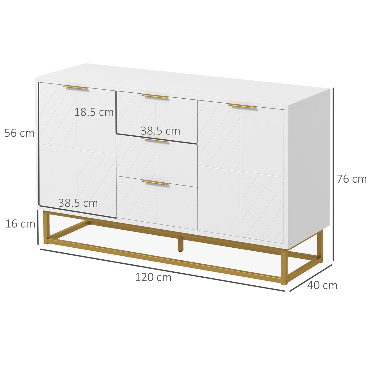 DIMENSIONS: Overall dimensions are 120W x 40D x 76H cm. Weight capacity is 50 kg for the entire unit, 8 kg for each shelf, and 3 kg for each drawer.