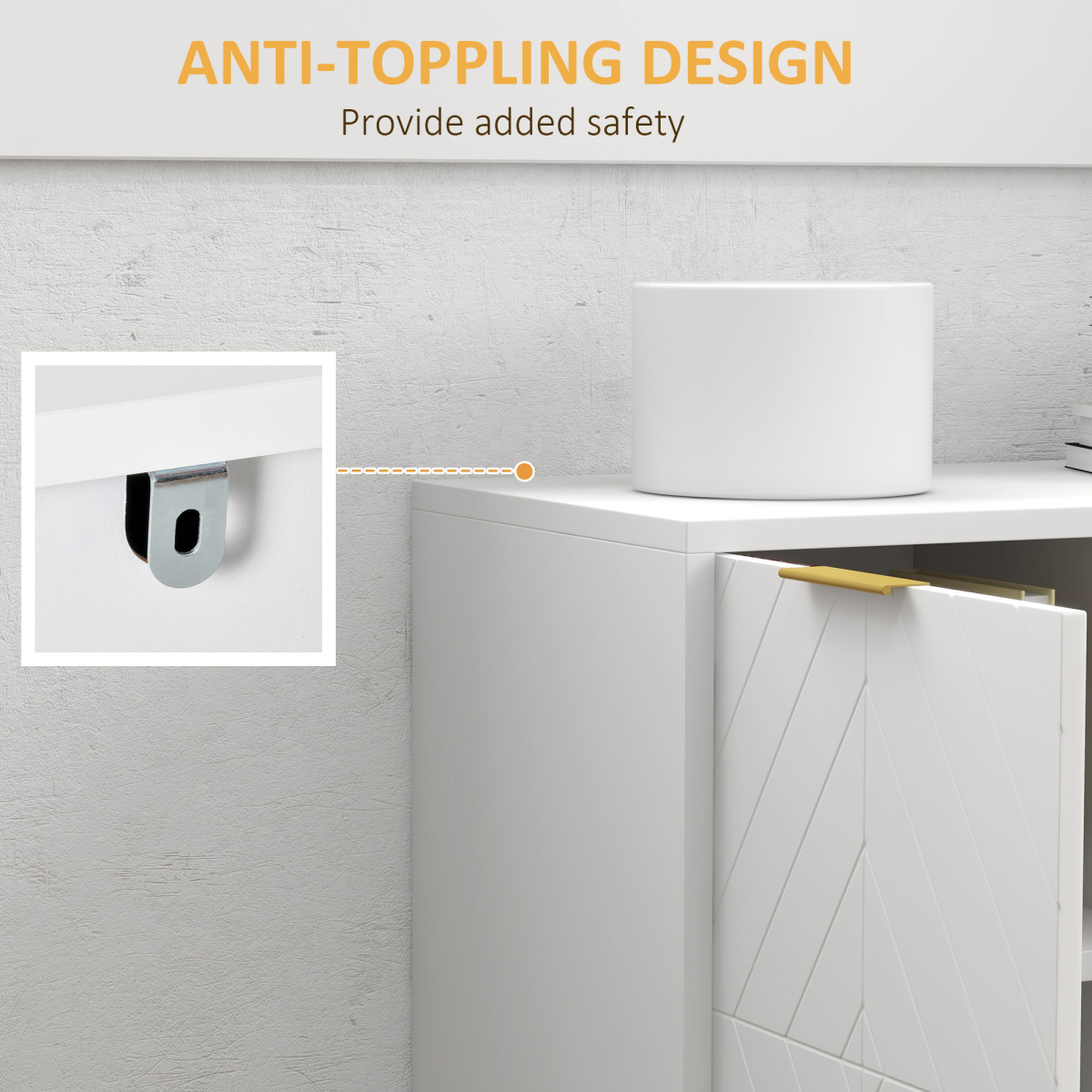 DURABLE MATERIAL: Constructed from high-quality MDF and steel, this freestanding storage cabinet is built for durability and ease of cleaning. Its anti-toppling design ensures safety, and the elevated base prevents moisture damage.