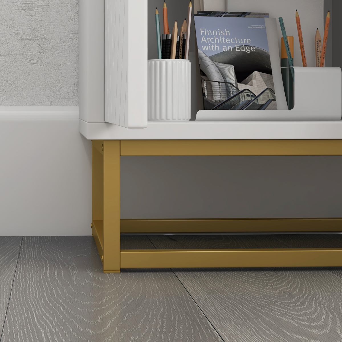 MODERN ELEGANCE LOOK: This sleek and sophisticated indoor cabinet features a luxurious gold base and coordinating hardware accents, designed to perfectly complement any interior style.