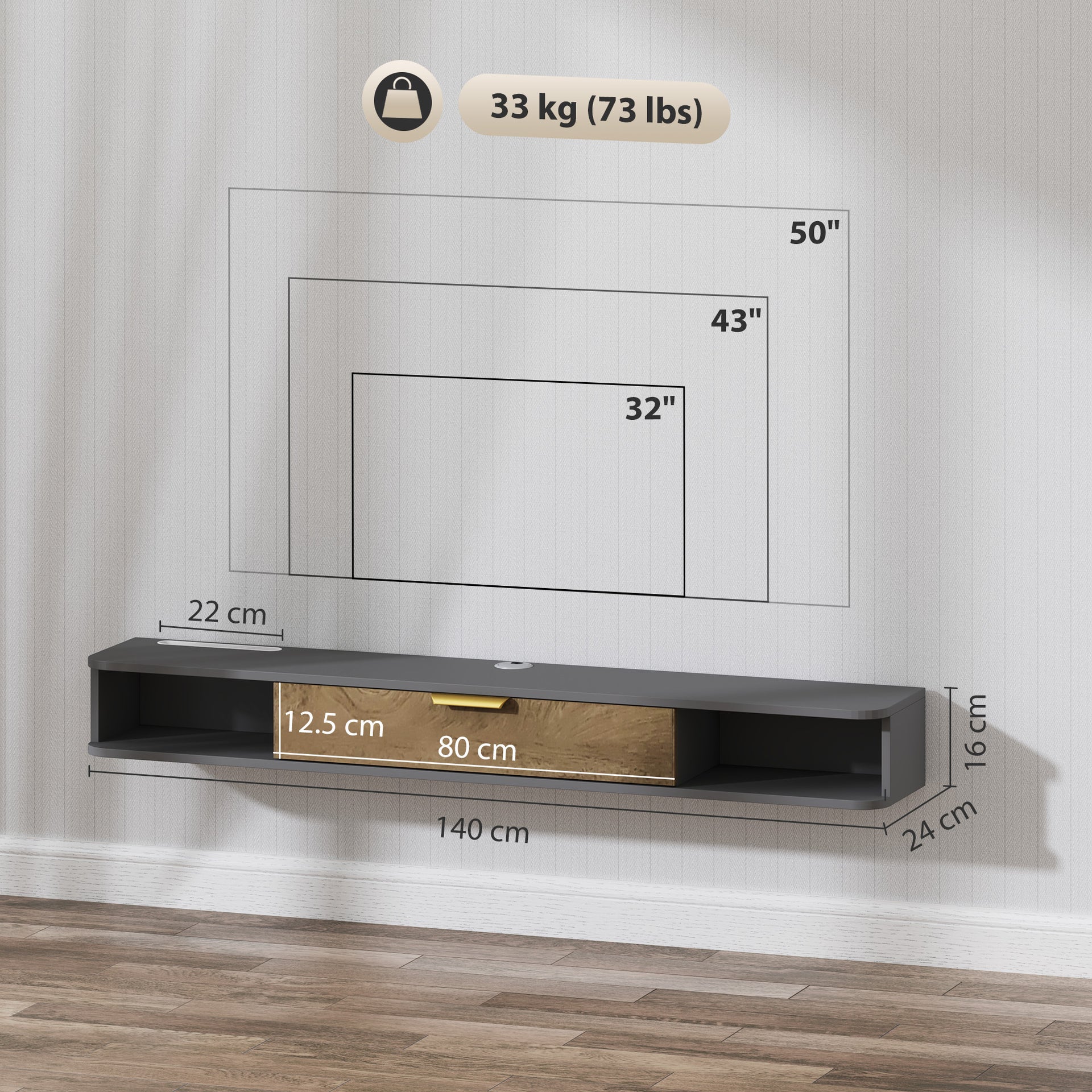 Chic 140cm Floating TV Unit: Stylish Storage & Cable Management