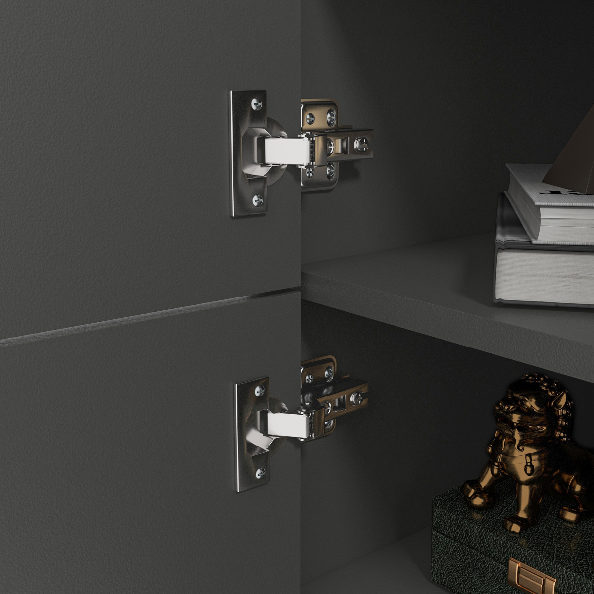Introducing the Storage Cabinet, a stunning combination of contemporary design and natural elegance. This versatile sideboard in a chic dark grey finish features beautifully contrasting wood-effect panels and sturdy legs, making it an eye-catching accent piece for any room in your home.