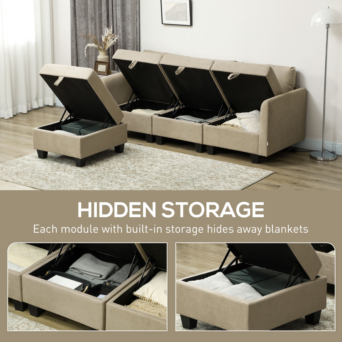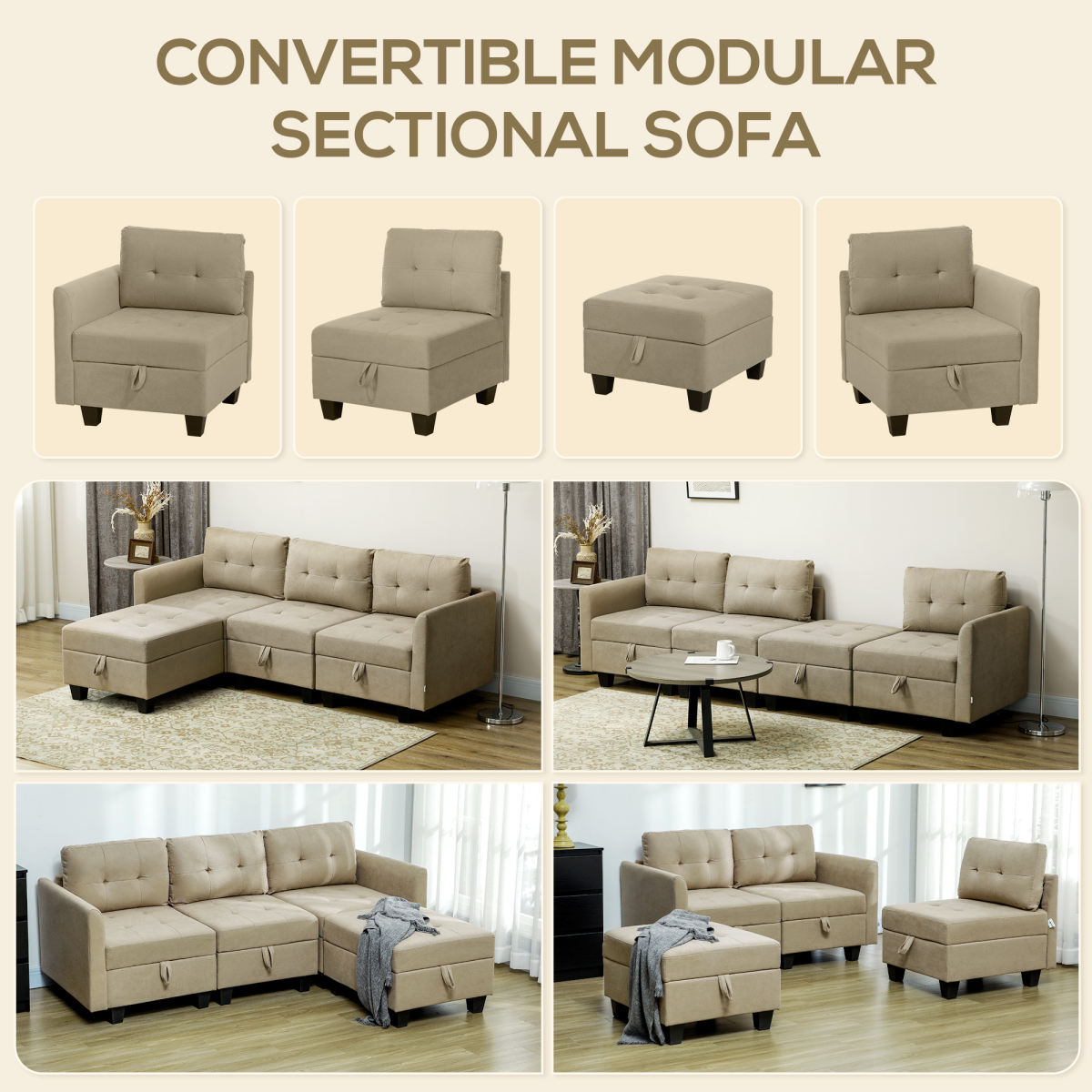 Convertible Modular Sectional Sofa with Storage & Wood Frame Light Brown