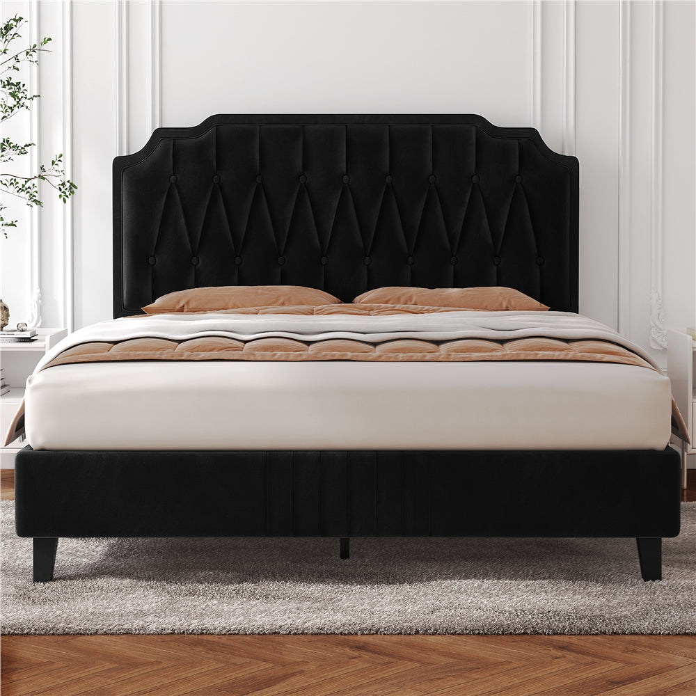 Double/King Bed Frame Upholstered Platform Bed with Adjustable Button Tufted Headboard/Velvet