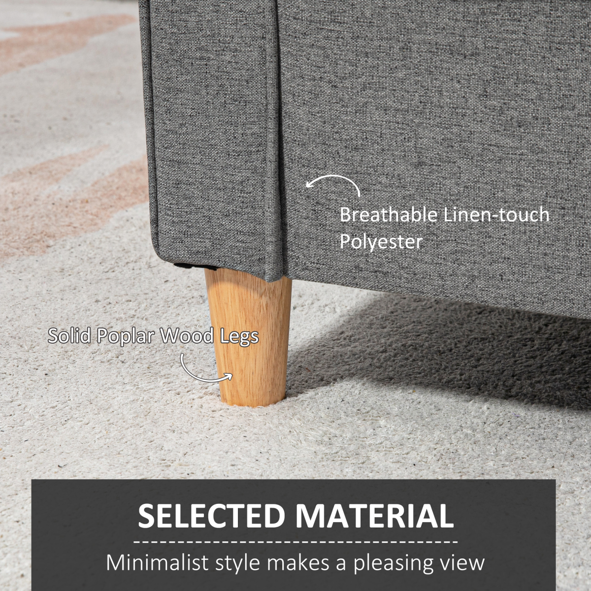 Built around a sturdy wooden frame with poplar legs, it delivers solid support for everyday use. The linen-look upholstery adds a fresh, contemporary feel that’s easy to pair with other decor.